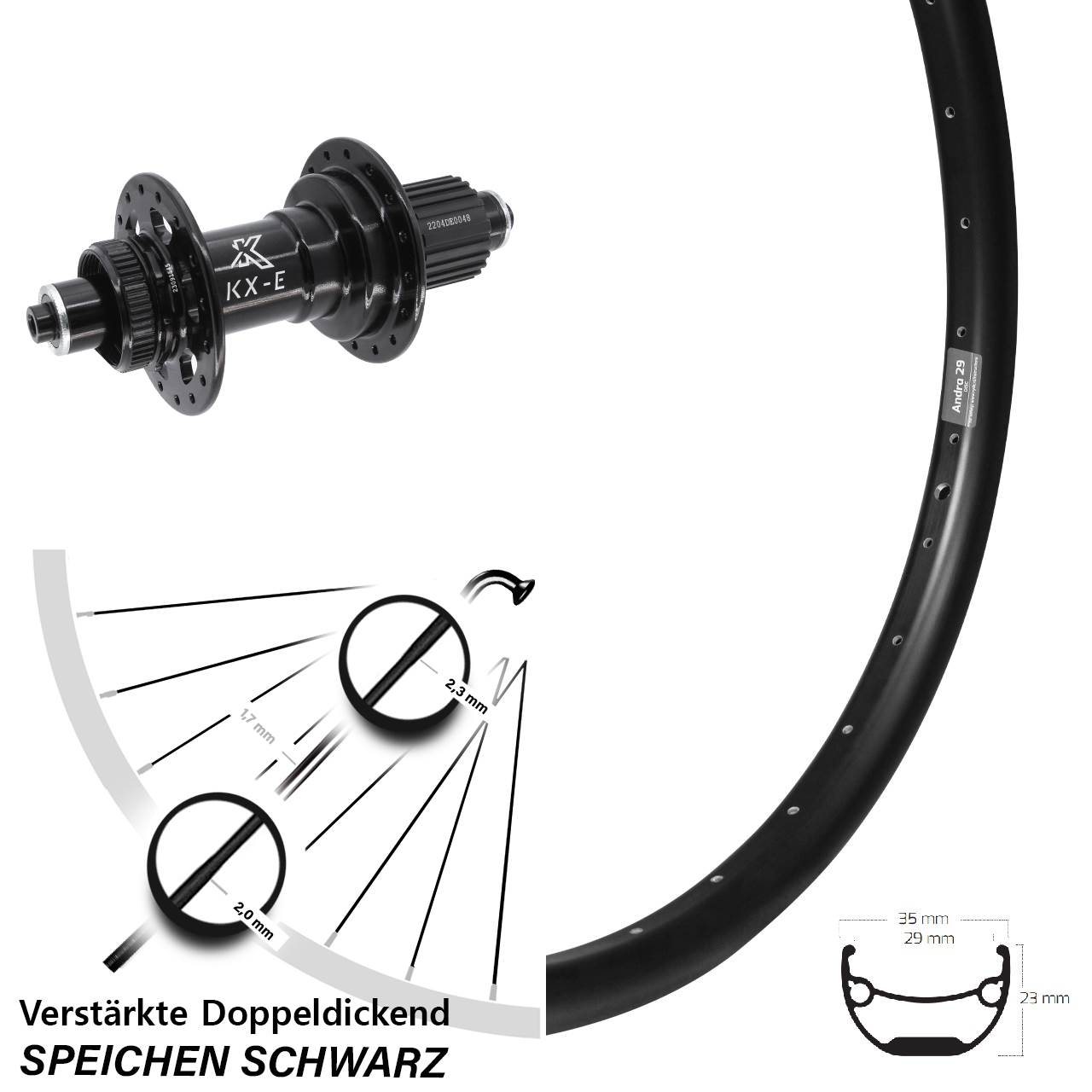 - Speichenstärke: 2,3-1,7-2,0 mm Edelstahl