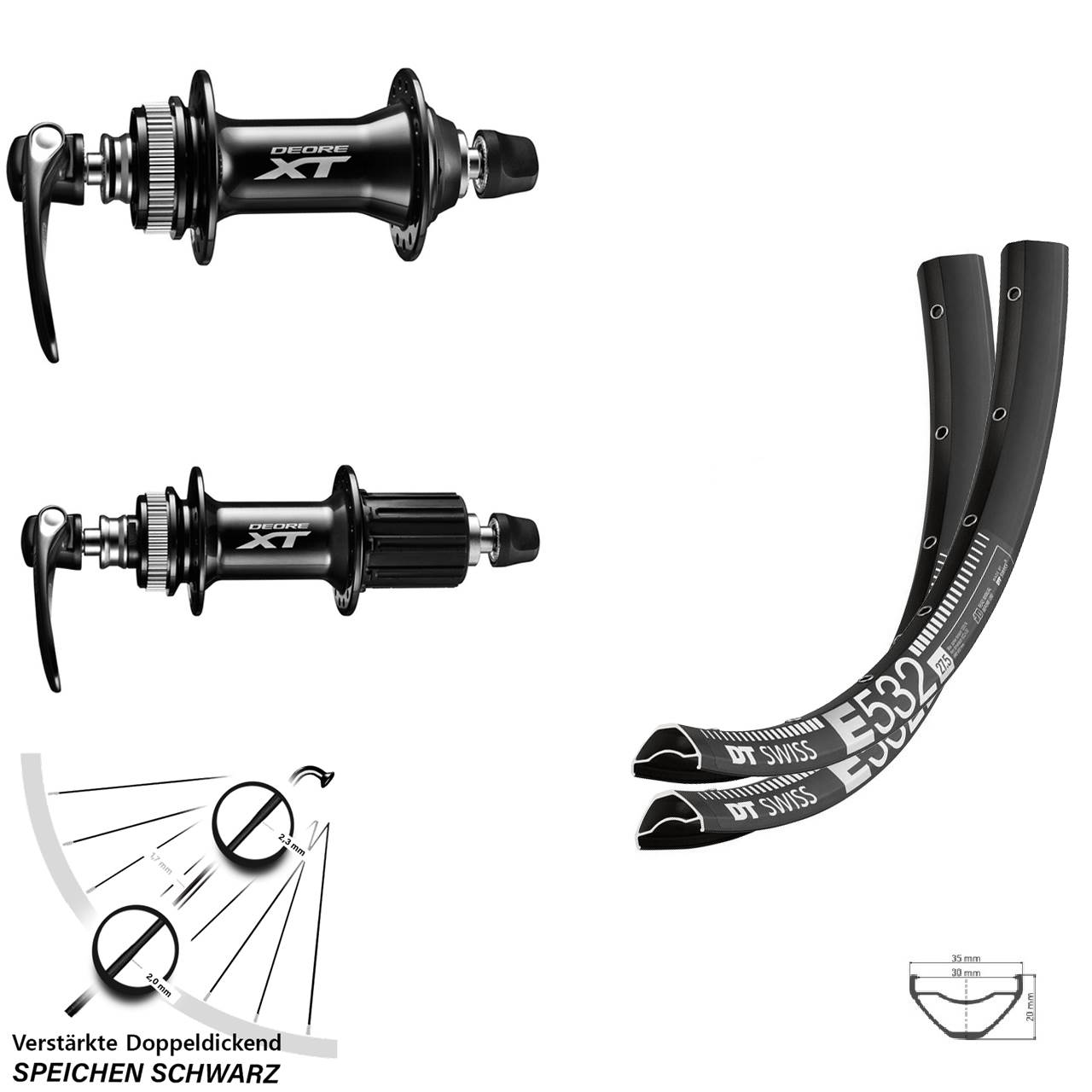 Disc Laufrad-Satz 29 Zoll DT Swiss E 532 Shimano XT 8-11 fach HG für Schnellspanner mit verstärkten Doppeldickendspeichen