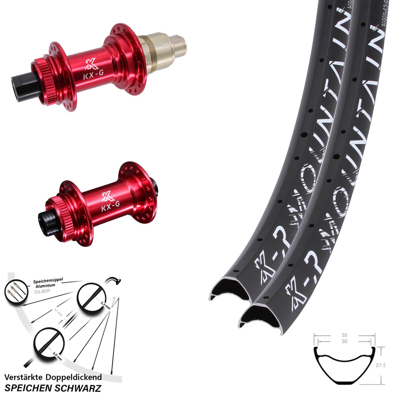 - 1 Disc Hinterrad 12x142 29 Zoll KX-GR Mountain rot SRAM XDR (Auswahl zwischen Alunippel rot, Alunippel schwarz, Alunippel silbern, Messingnippel schwarz, Messingnippel silbern)