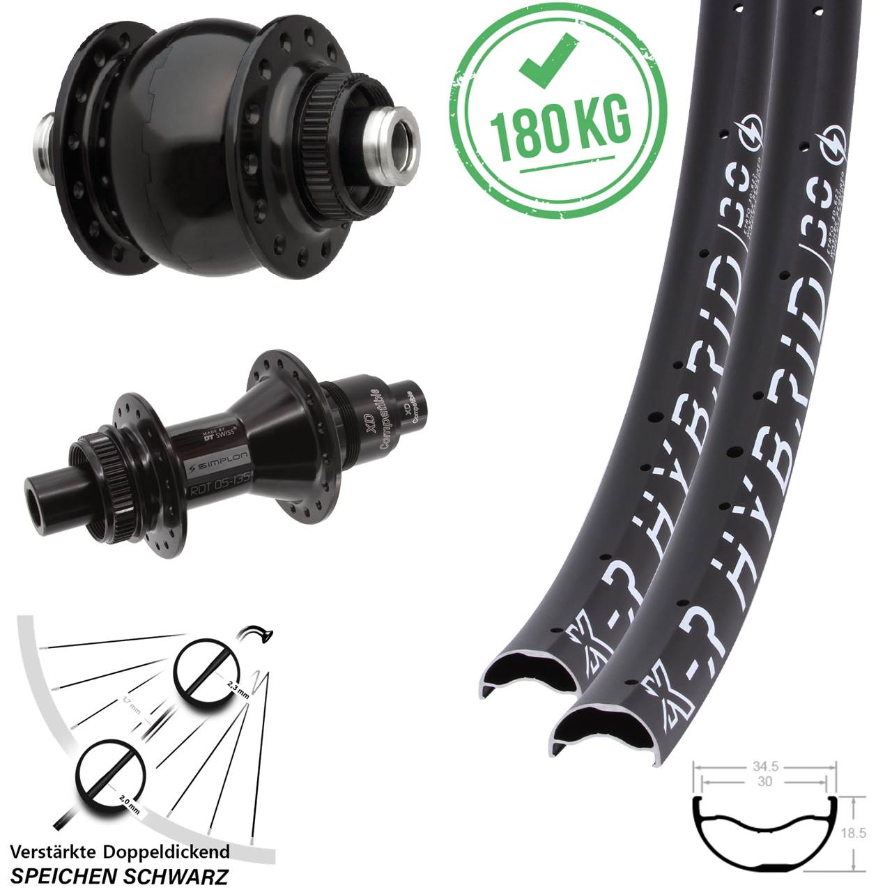 Disc Laufradsatz 29 Zoll KX-R Hybrid 30 DT Swiss 370 SON 28 XD 12x100/142 mit verstärkten Doppeldickendspeichen