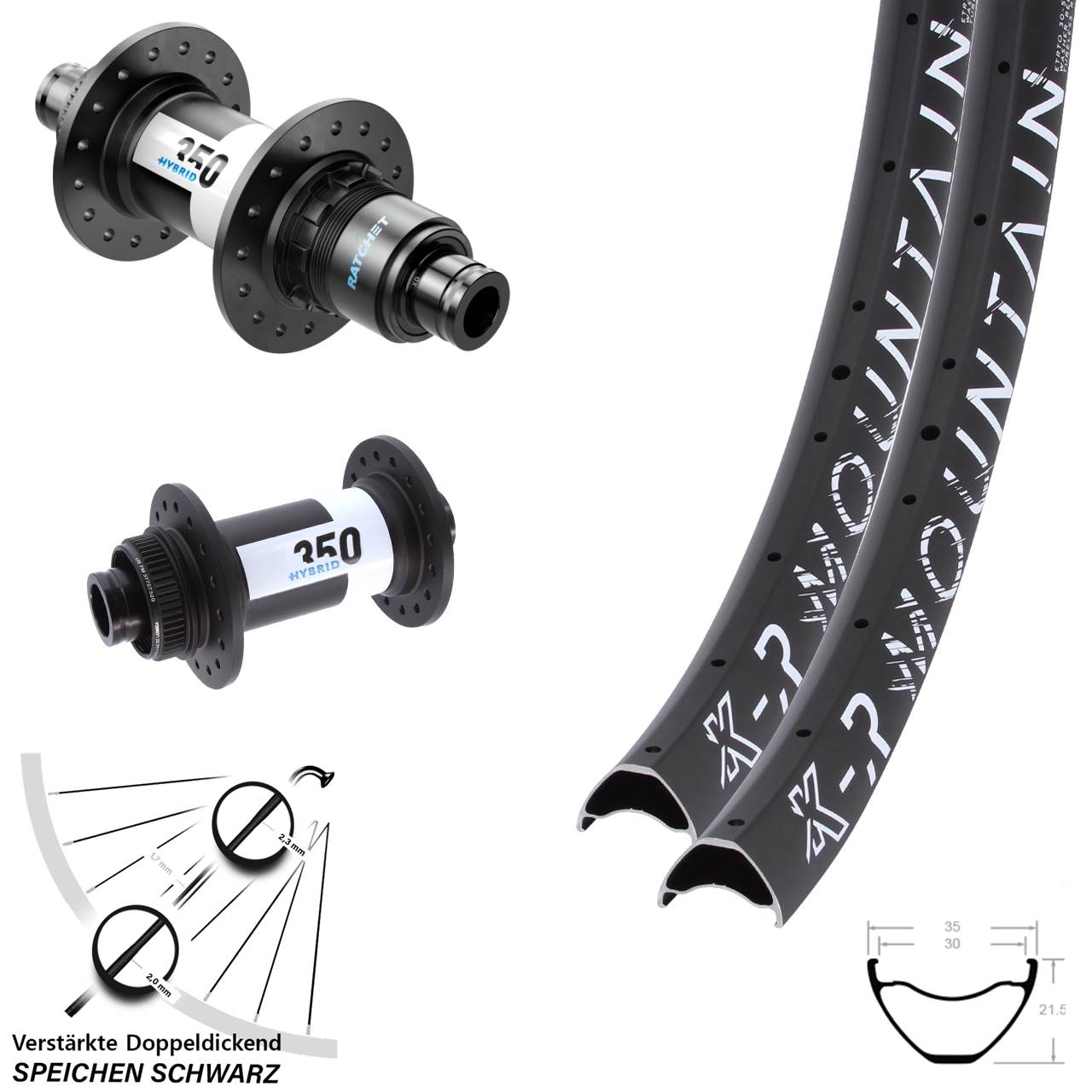 - Modell Vorderradnabe / Hinterradnabe: DT Swiss 350 Hybrid DT Swiss 350 Hybrid Ratchet 24 schwarz