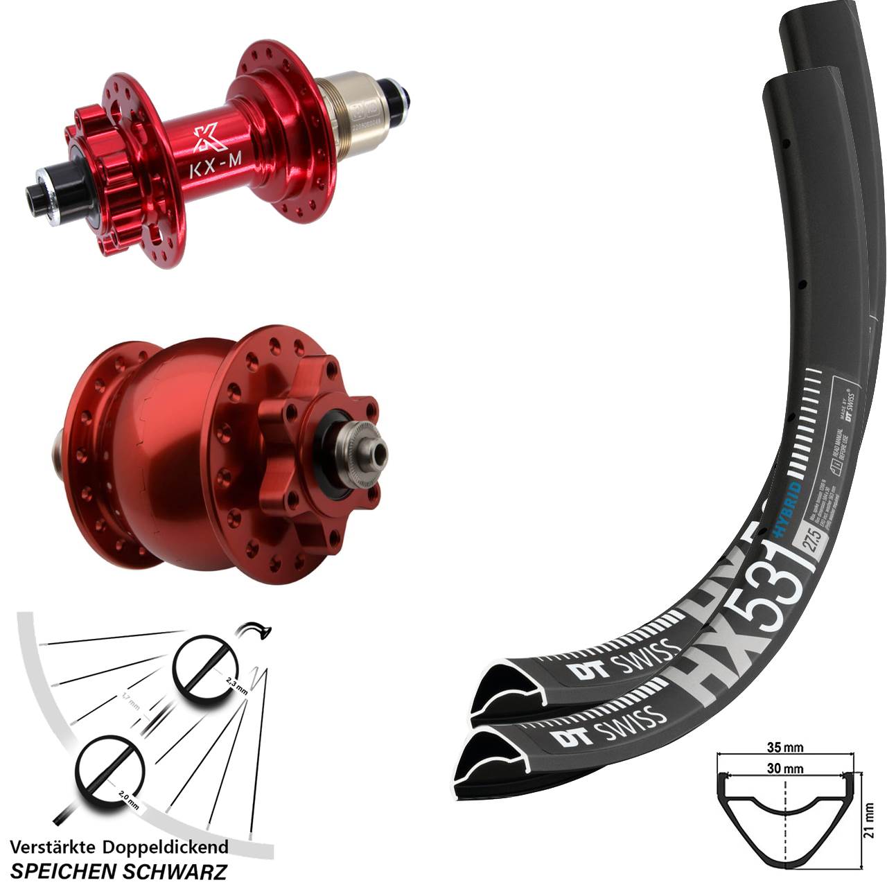 Produktbeschreibung Disc Laufradsatz für Schnellspanner 29 Zoll DT Swiss HX531 KX-M rot SON 28 SRAM XD