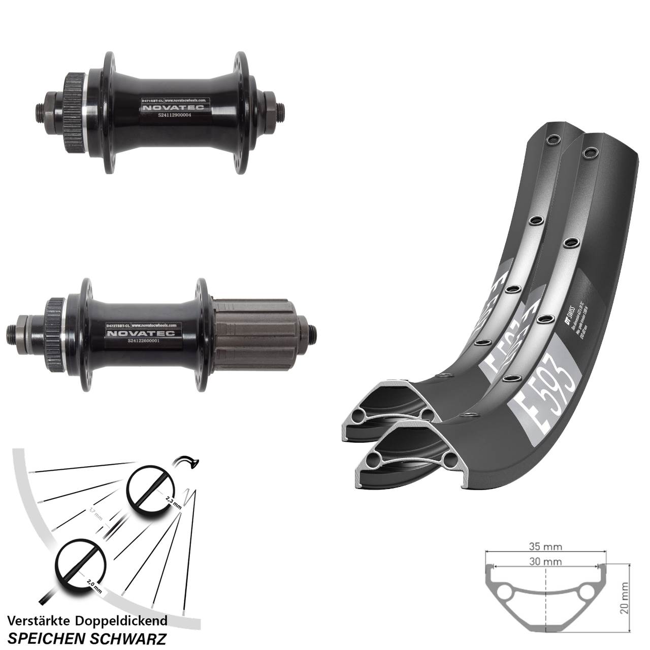 Disc Laufradsatz QR 29 Zoll DT Swiss E593 Novatec D471 D472 8-12 fach mit verstärkten Doppeldickendspeichen