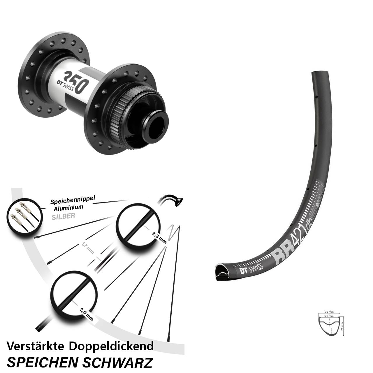 - Speichenstärke: 2,3-1,7-2,0 mm Edelstahl