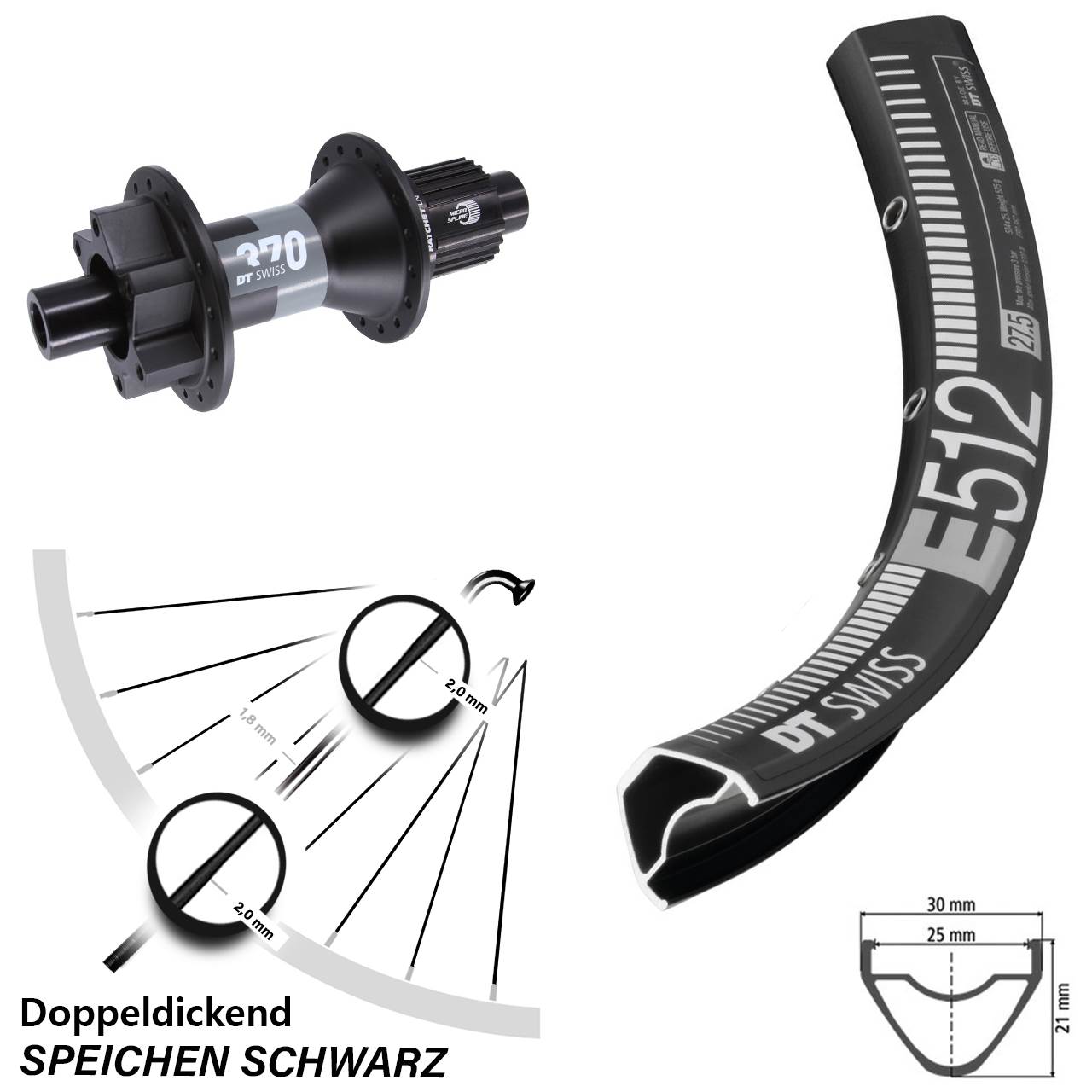- DT Swiss E 512 27,5 Zoll Hinterrad 370 6-Loch Micro Spline 12x148