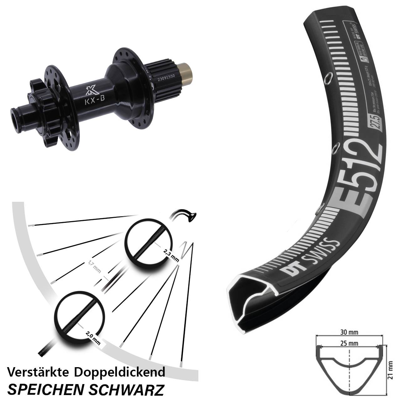 Technische Daten Hinterrad DT Swiss E 512 Disc schwarz mit Nabe KX-B schwarz