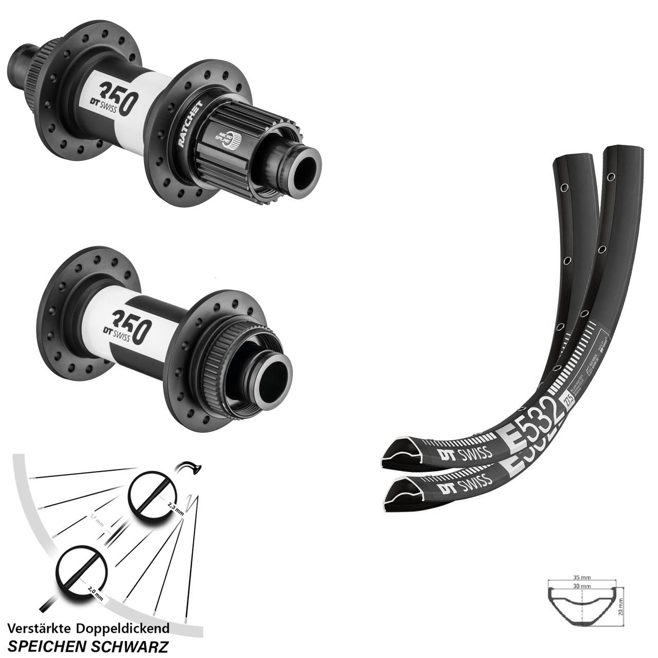 - 1 29 Zoll DT Swiss E532-350 Ratchet 36 Hinterrad 12x148 Boost Micro Spline (Auswahl zwischen Alunippel rot, Alunippel schwarz, Alunippel silbern, Messingnippel schwarz, Messingnippel silbern)