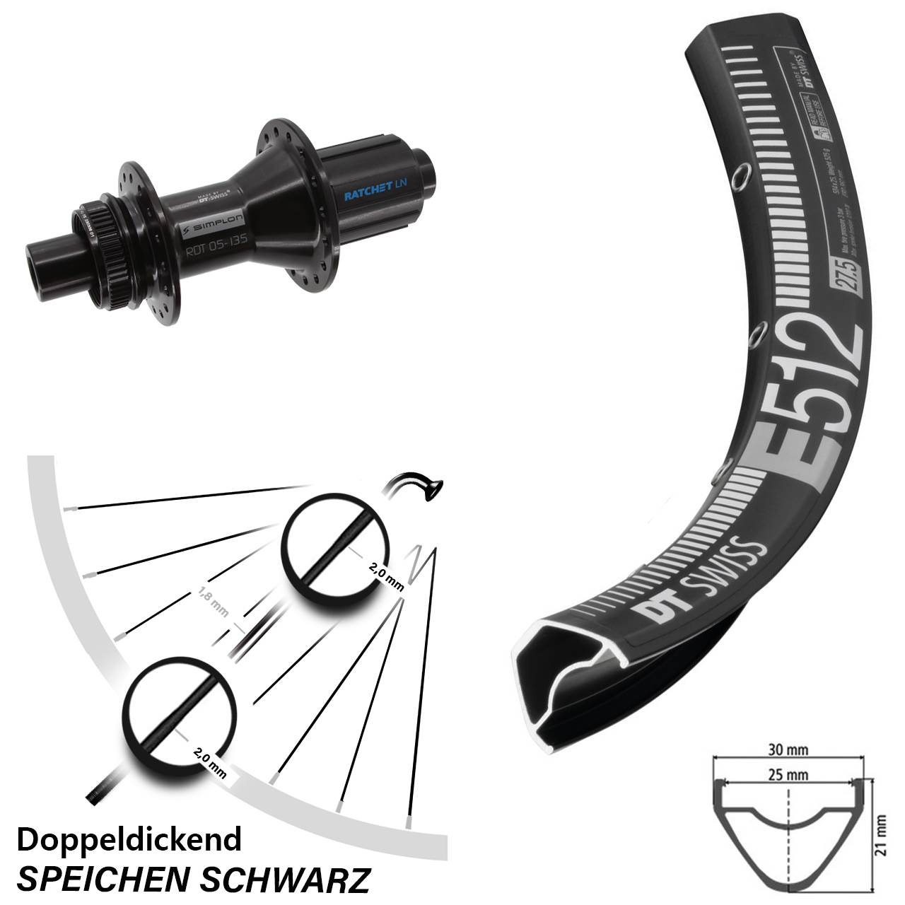 - Speichenstärke: 2,0-1,8-2,0 mm Edelstahl