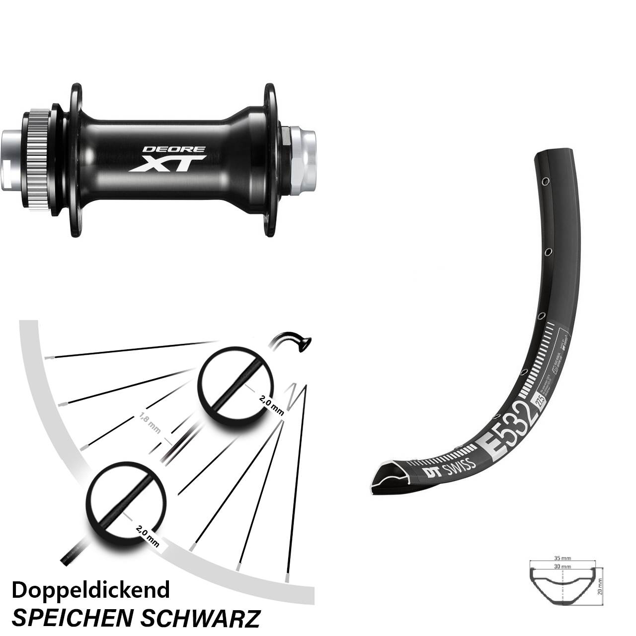 Technische Daten Vorderrad DT Swiss E 532 Disc schwarz mit Nabe Shimano HB-M8010-B schwarz