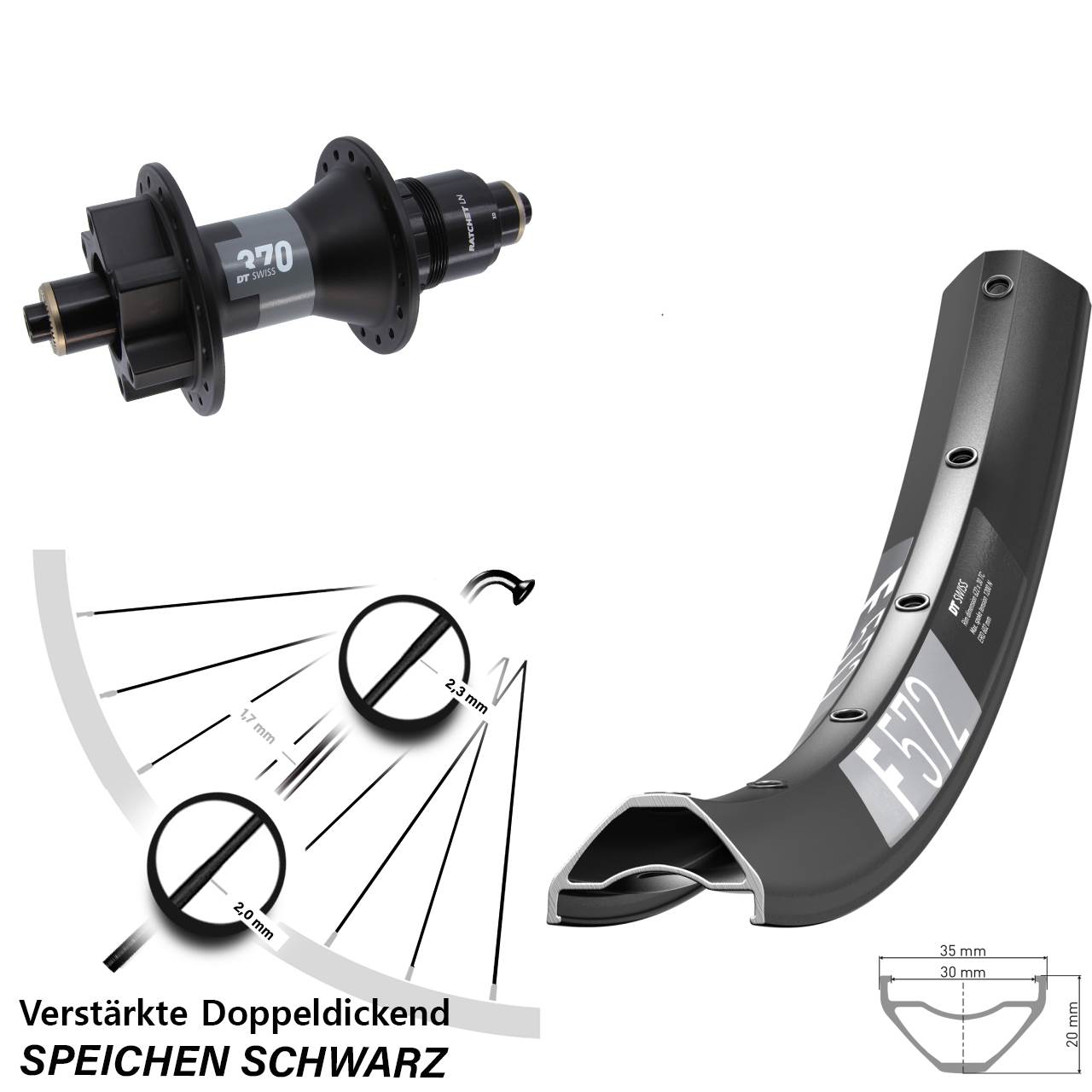 Technische Daten Hinterrad DT Swiss F 572 schwarz mit Nabe DT Swiss 370 Ratchet LN schwarz