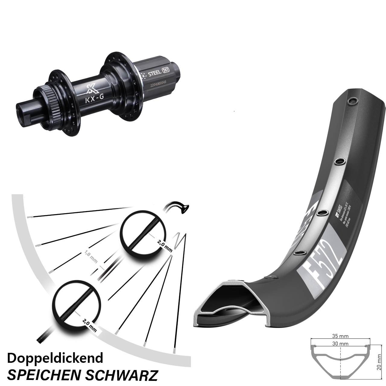 Technische Daten Hinterrad DT Swiss F 572 schwarz mit Nabe KX-GS Stahlachse Stahl-Freilauf schwarz