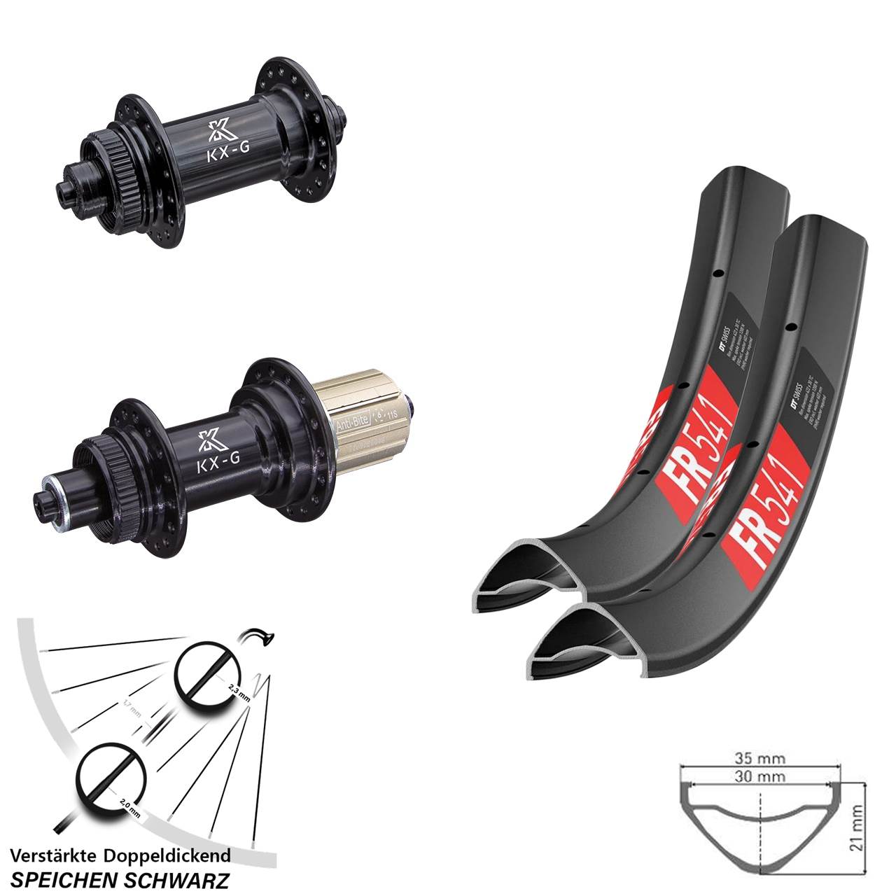 DT Swiss FR 541 KX-G 29 Zoll Laufradsatz Centerlock QR 8-12 fach mit verstärkten Doppeldickendspeichen