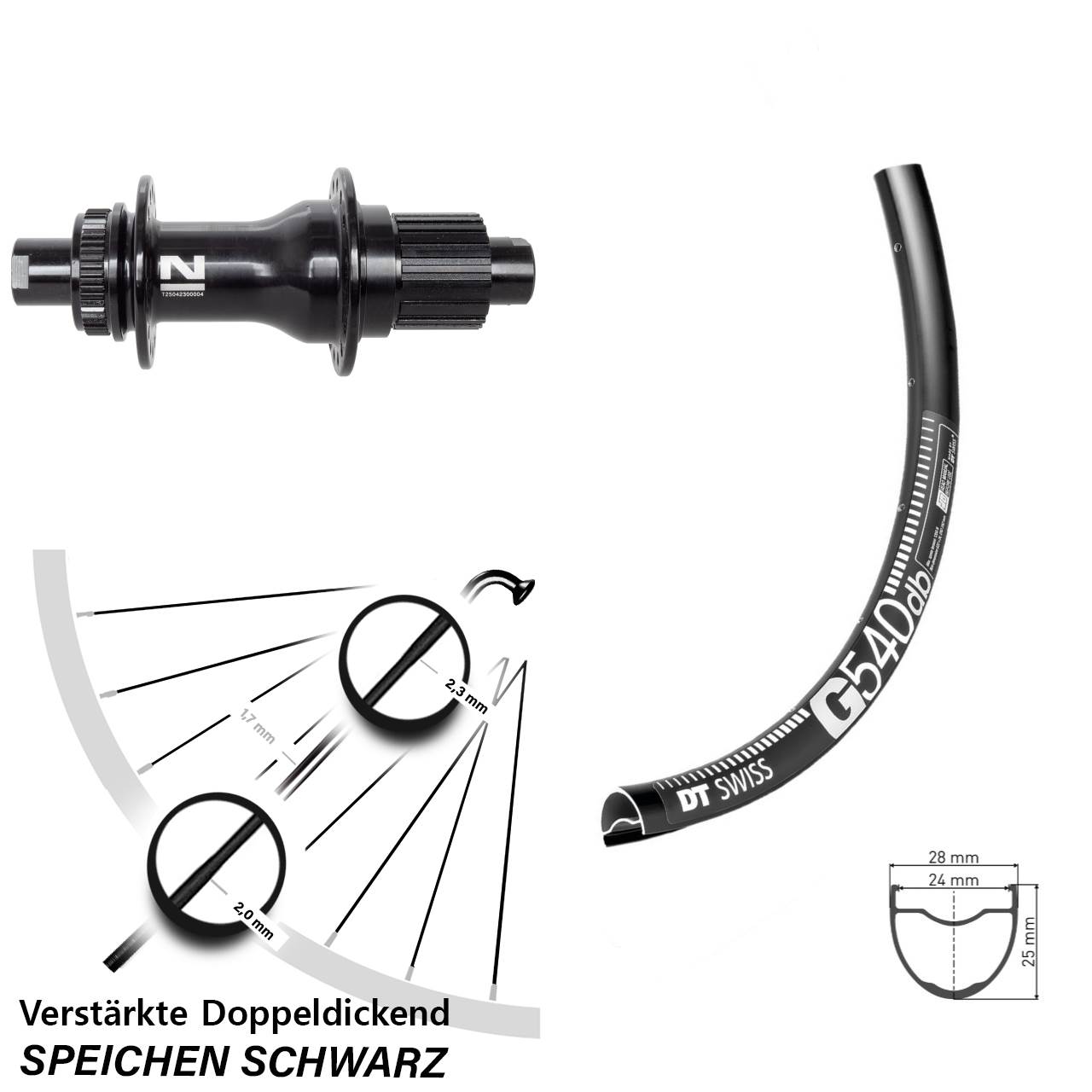 - Speichenstärke: 2,3-1,7-2,0 mm Edelstahl