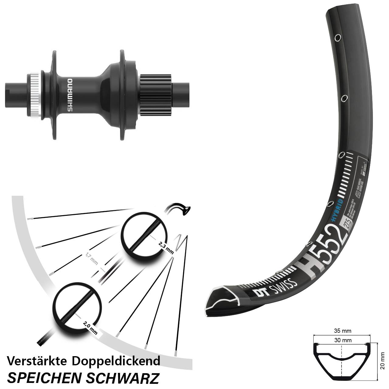 Technische Daten Hinterrad DT Swiss H 552 Disc schwarz mit Nabe Shimano FH-MT410 schwarz