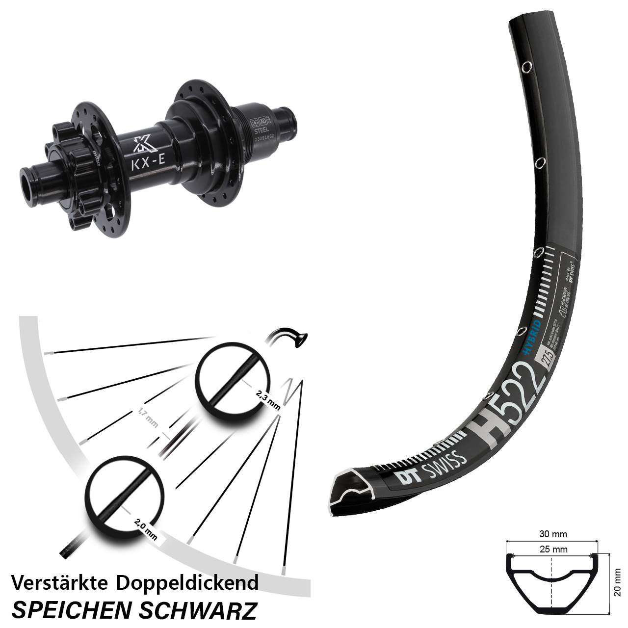 DT Swiss H522 KX-E Stahl Freilauf 27,5 Zoll Disc Laufrad 12x148 Boost XD mit verstärkten Doppeldickendspeichen