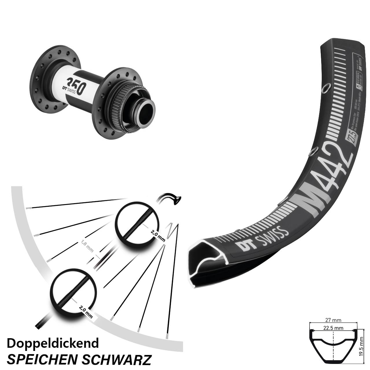 Technische Daten Vorderrad DT Swiss M 442 Disc schwarz mit Nabe DT Swiss 350 schwarz