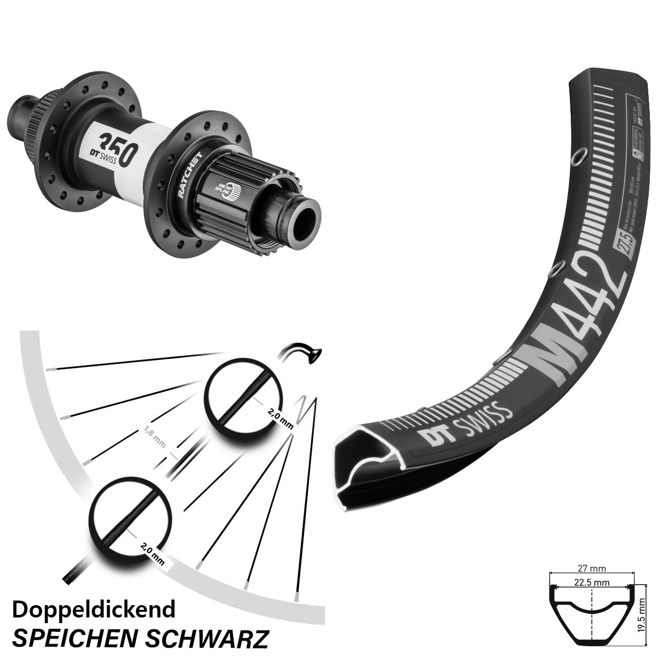 Technische Daten Hinterrad DT Swiss M 442 Disc schwarz mit Nabe DT Swiss 350 Ratchet 36 schwarz