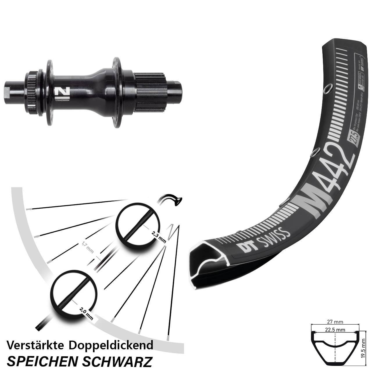 Technische Daten Hinterrad DT Swiss M 442 Disc schwarz mit Nabe Novatec D792 schwarz