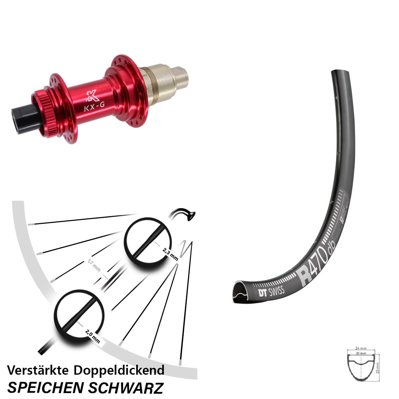- Speichenstärke: 2,3-1,7-2,0 mm Edelstahl