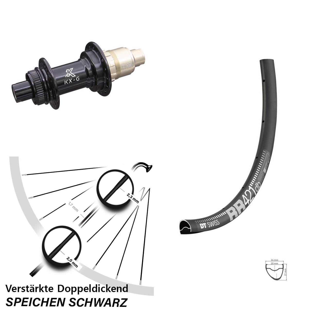 - Speichenstärke: 2,3-1,7-2,0 mm Edelstahl