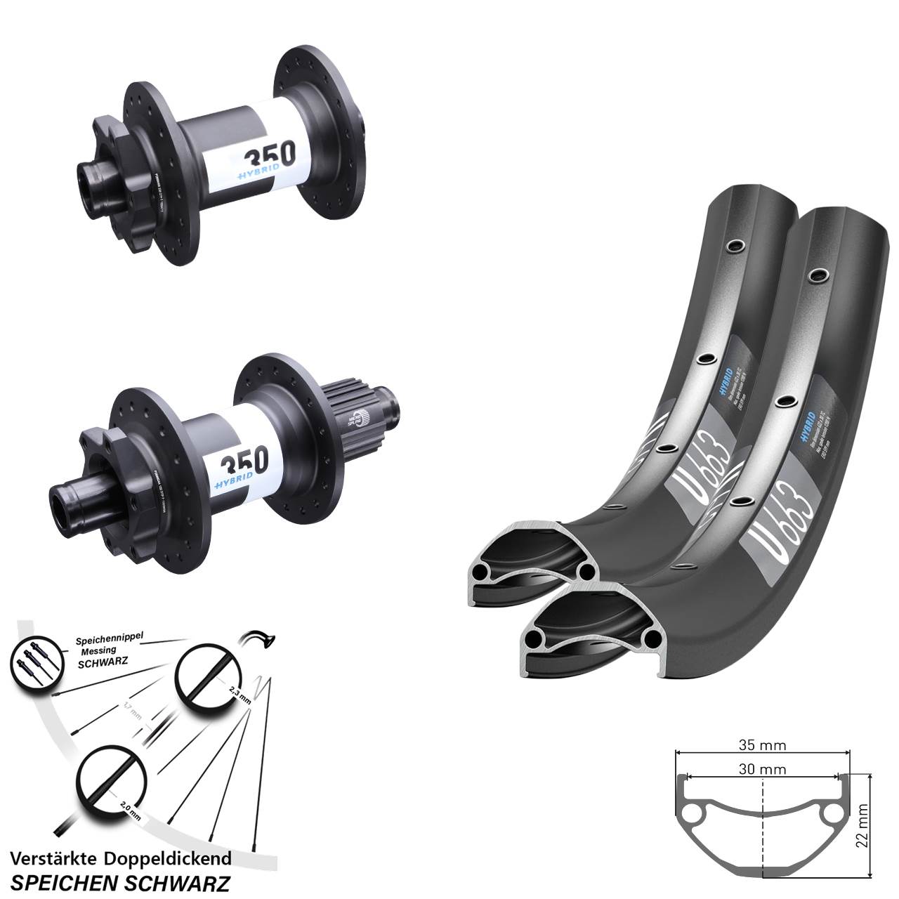- 1 Disc 29 Zoll Laufrad DT Swiss U663-Hybrid 350 Micro Spline 12x148 Boost (Auswahl zwischen Messingnippel schwarz, Messingnippel silbern)
