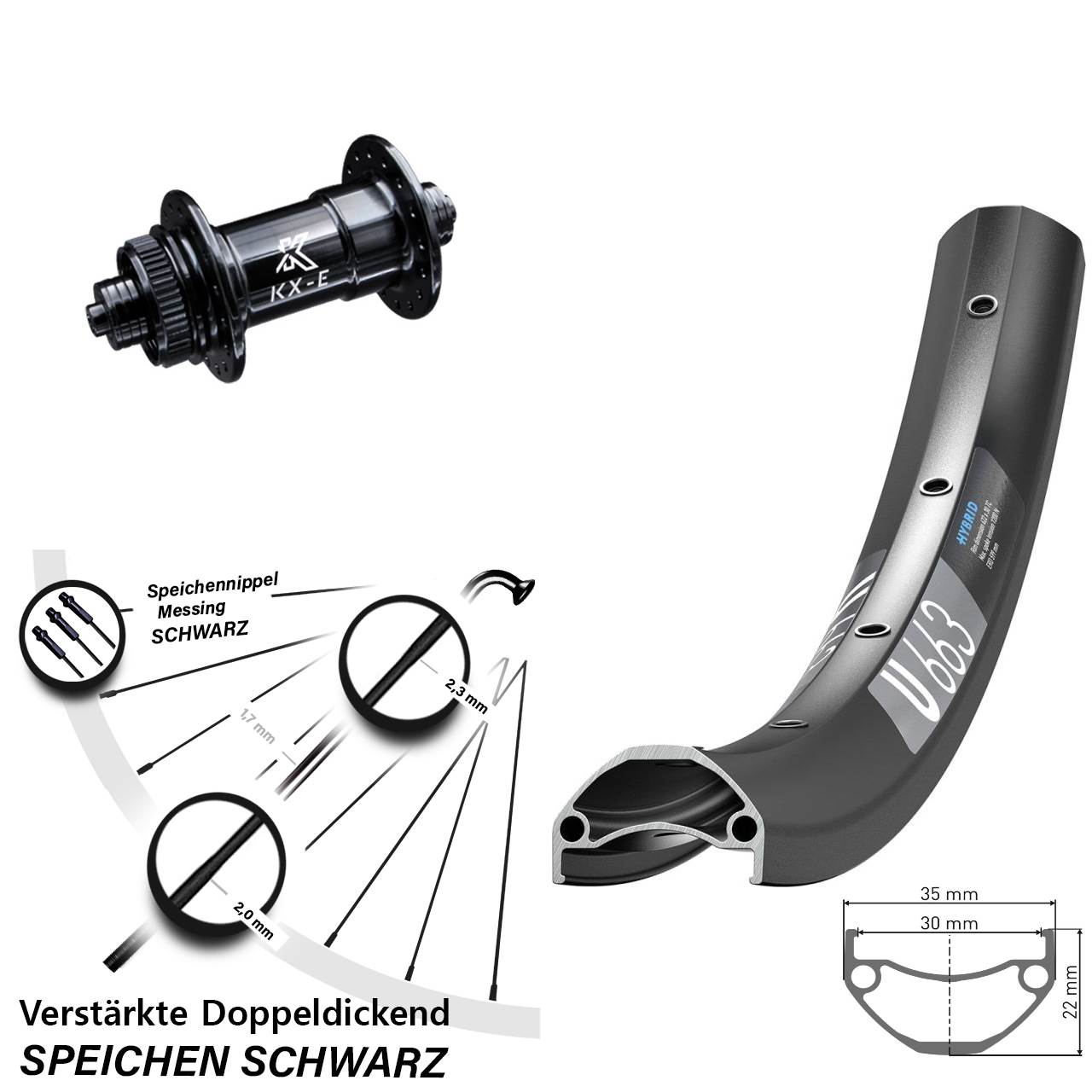 Technische Daten Vorderrad DT Swiss U 663 schwarz mit Nabe KX-E verstärkt schwarz