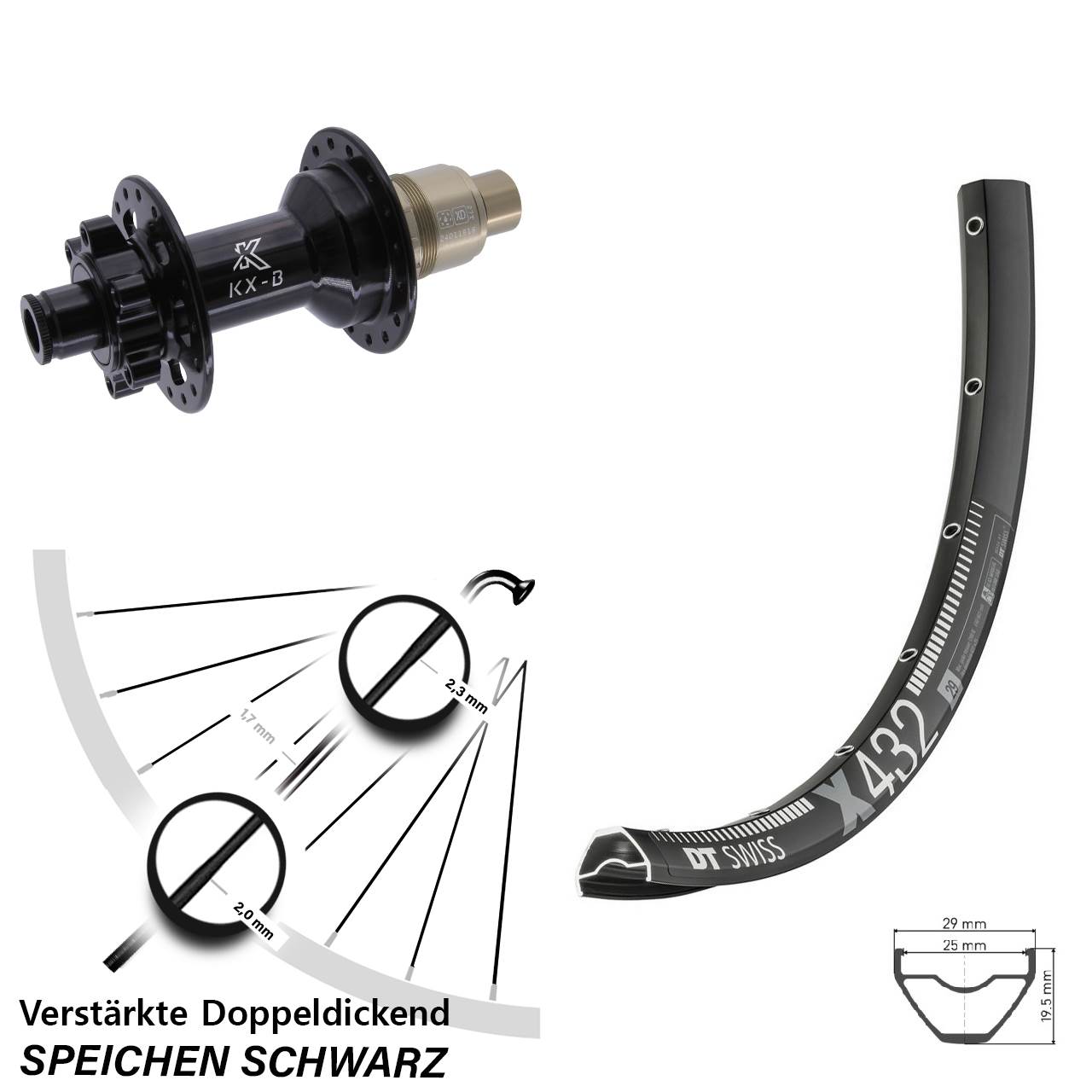 Technische Daten Hinterrad DT Swiss X 432 Disc schwarz mit Nabe KX-B schwarz