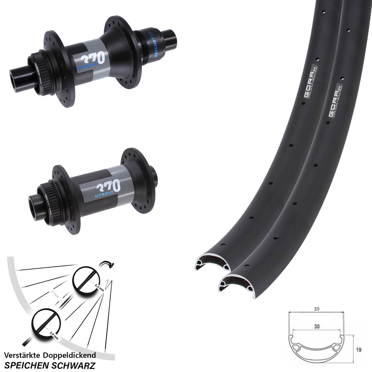 - 1 27,5 Zoll Gora 30 DT Swiss 370 Hybrid Centerlock Hinterrad 12x148 SRAM XD (Auswahl zwischen Messingnippel schwarz, Messingnippel silbern)