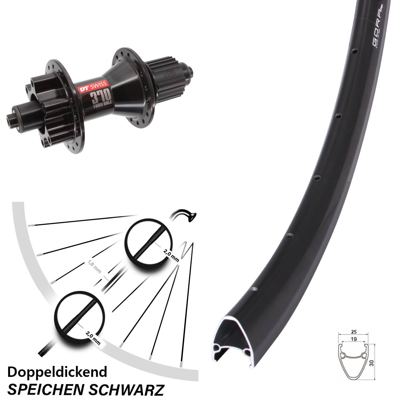 Technische Daten Hinterrad Gora Plus Disc schwarz mit Nabe DT Swiss 370 Hybrid schwarz