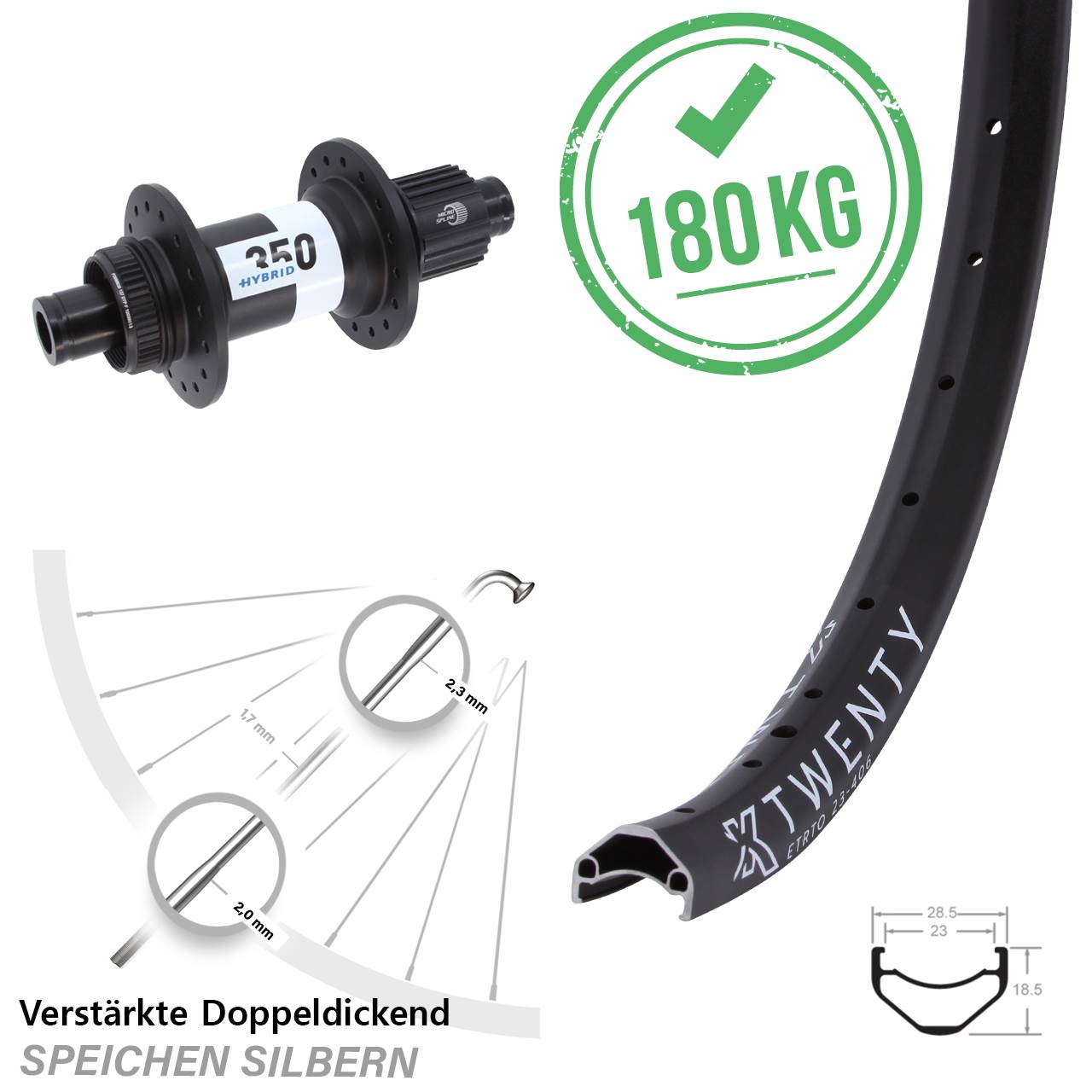 Technische Daten Hinterrad KX Twenty schwarz mit Nabe DT Swiss 350 Hybrid Ratchet 24 schwarz