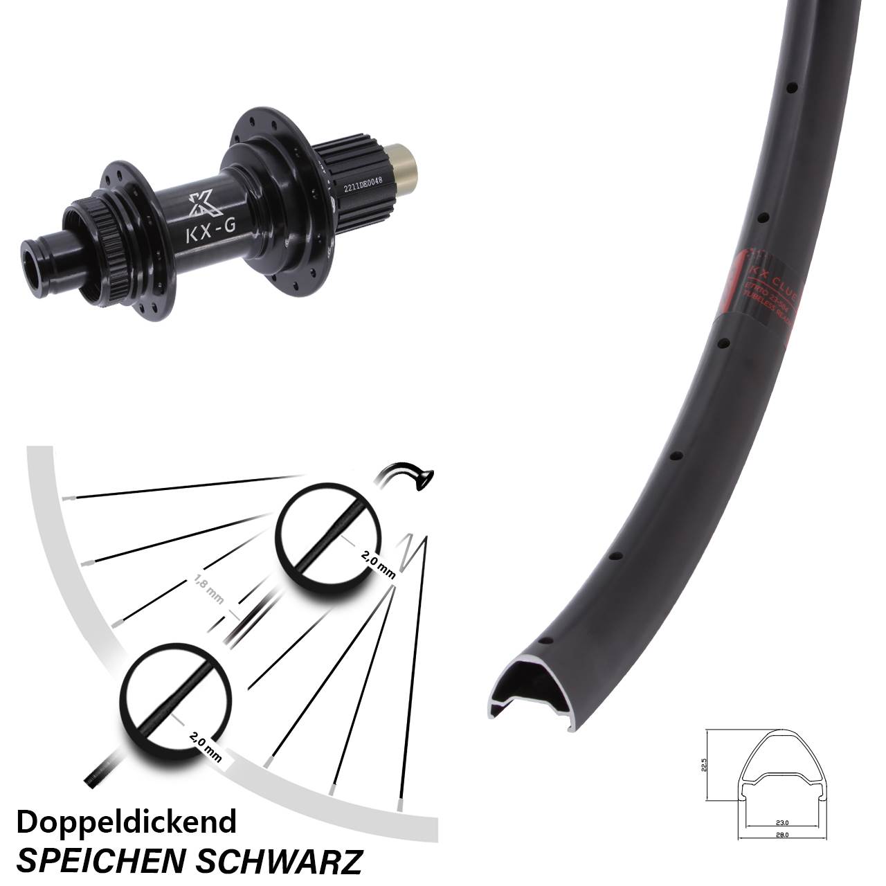 Technische Daten Hinterrad KX Clue schwarz mit Nabe KX-G Steckachse schwarz