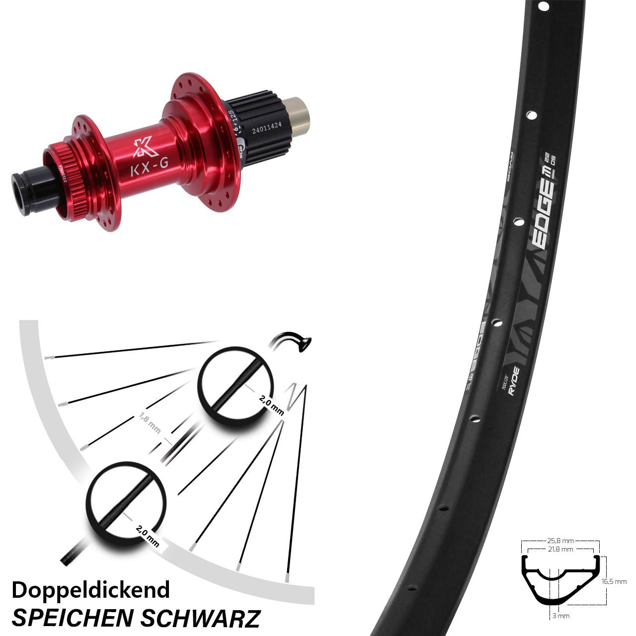 Hinterrad Centerlock 28-29 Zoll Ryde Edge M22 KX-G rot Micro Spline 12x142 mit Doppeldickendspeichen