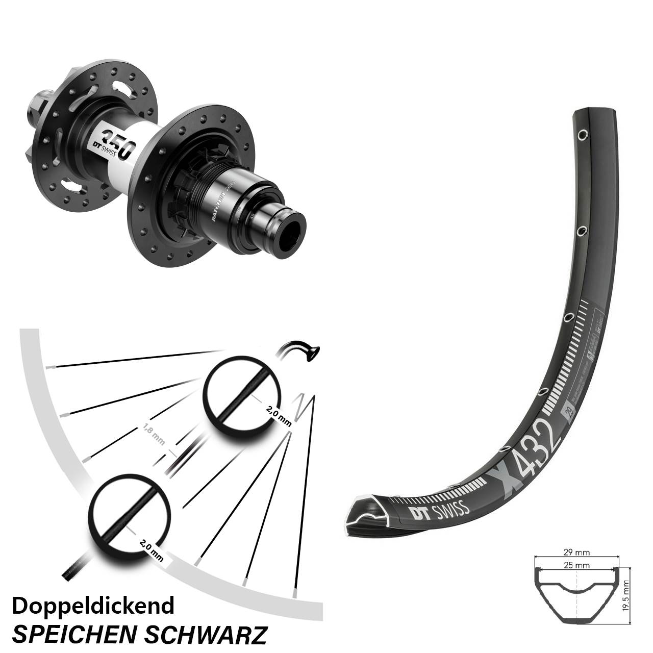 - Speichenstärke: 2,0-1,8-2,0 mm Edelstahl