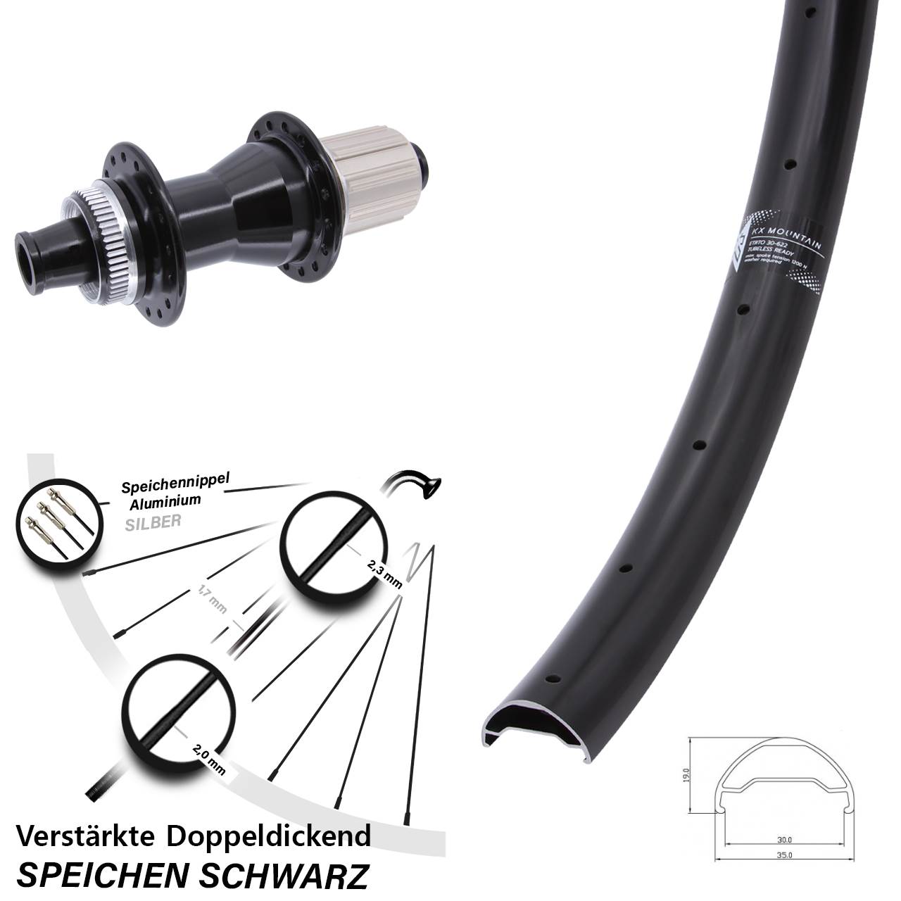 Hinterrad Centerlock 12x142 29 Zoll KX Mountain TR Novatec CL142 8-12 fach HG mit verstärkten Doppeldickendspeichen