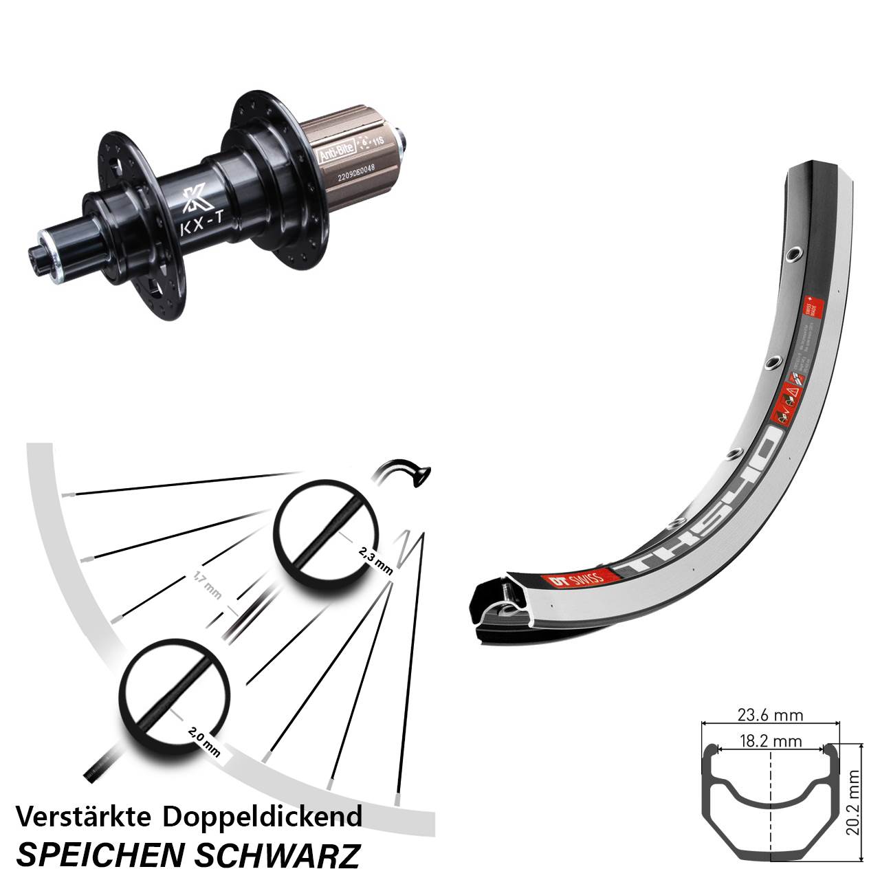 - Speichenstärke: 2,3-1,7-2,0 mm Edelstahl