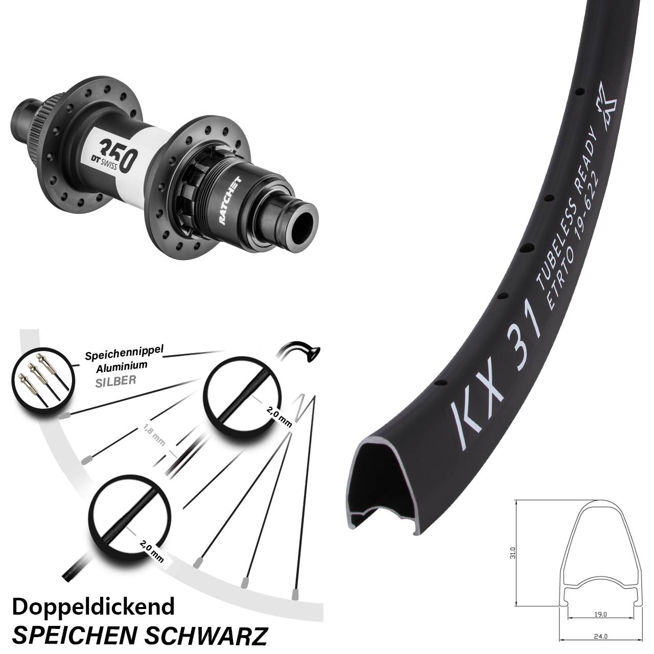 KX 31 DT Swiss 350 XDR 28 Zoll Hinterrad Centerlock 12x142 mit Doppeldickendspeichen