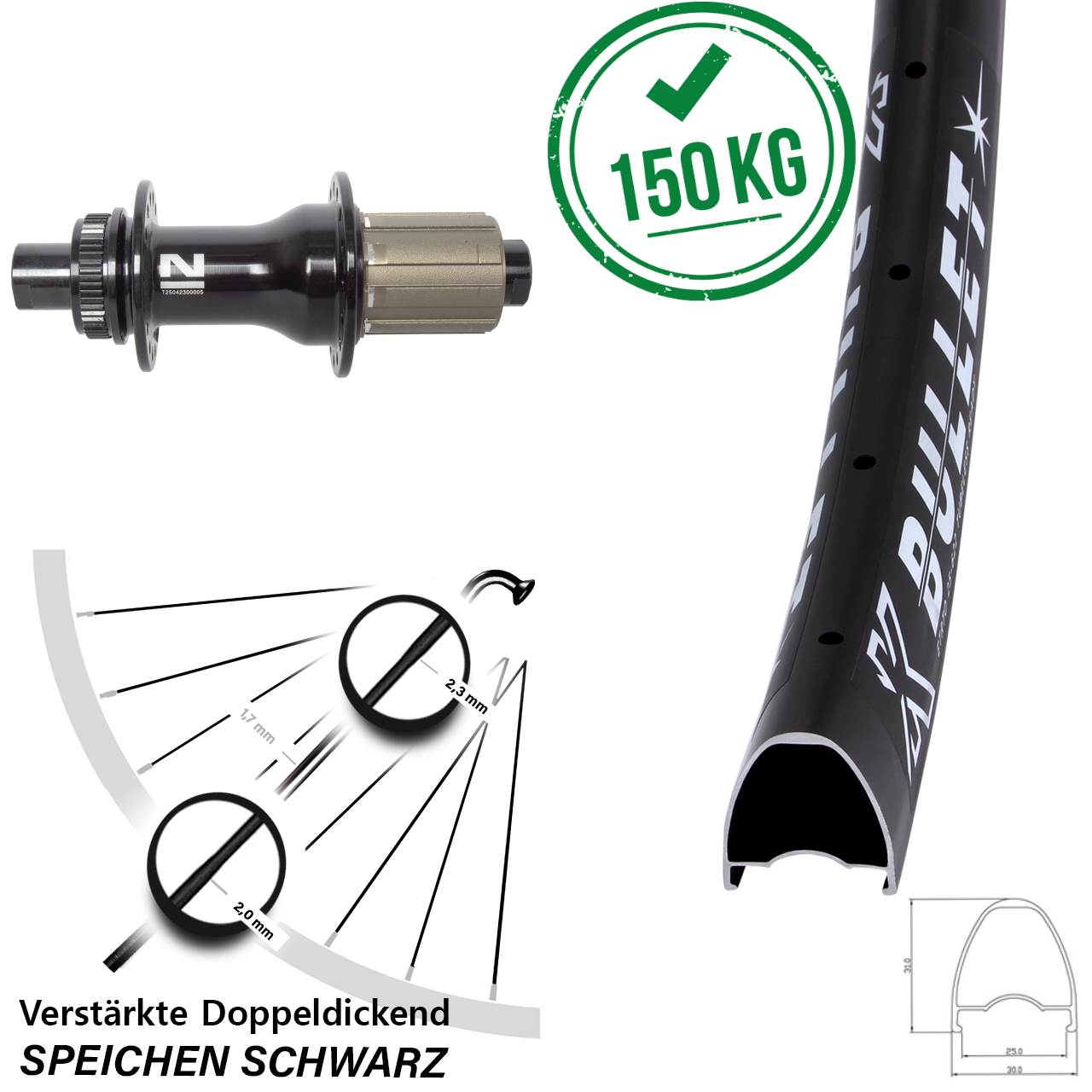 - Speichenstärke: 2,3-1,7-2,0 mm Edelstahl