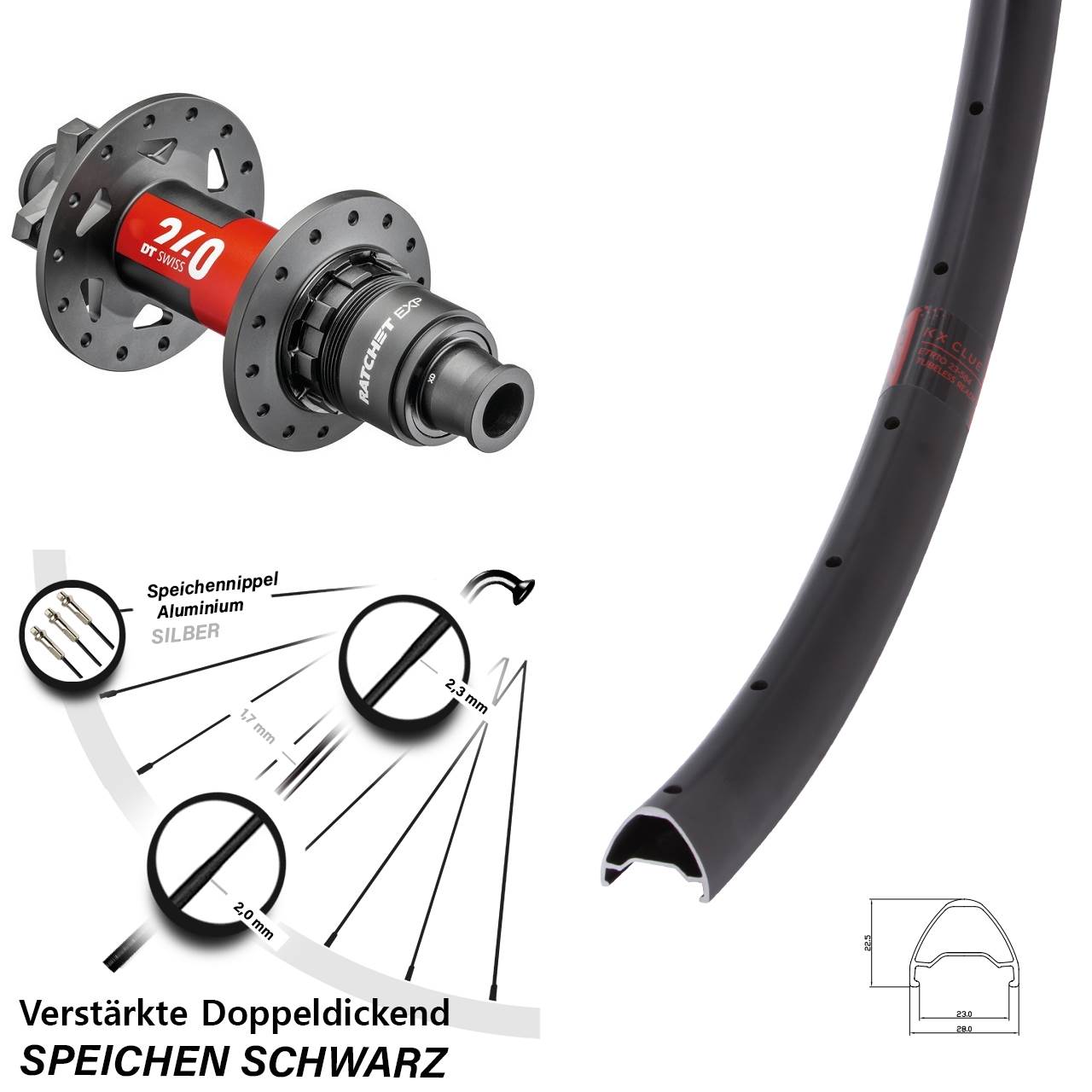- Speichenstärke: 2,3-1,7-2,0 mm Edelstahl