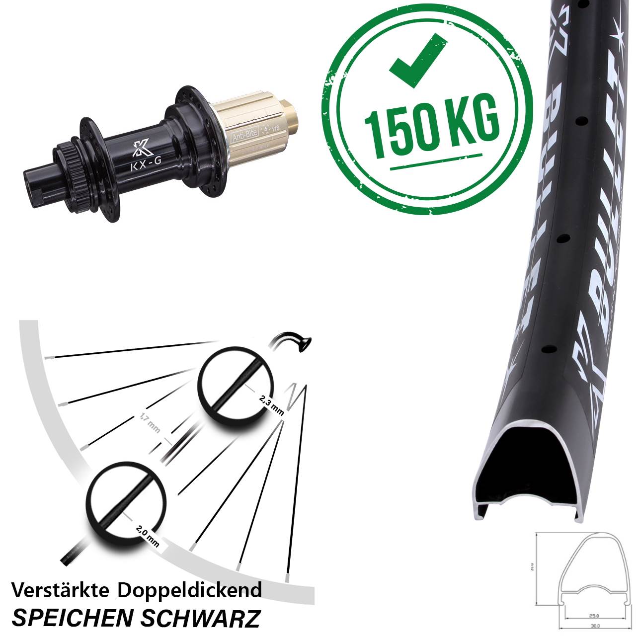 KX-G Bullet OS 29 Zoll Disc Hinterrad 12x142 8-12 fach HG mit verstärkten Doppeldickendspeichen