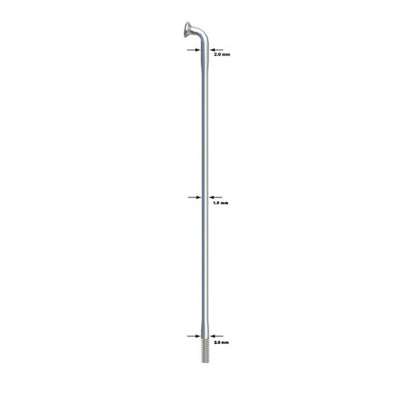 - Speichen: Mit dieser hochwertigen Edelstahl-Speiche liefert die belgische Firma Sapim eine extra gewichtsoptimierte und rostfreie Speiche ab. Sie ist speziell für erhöhte Anforderungen und für besonders gewichtsoptimierte Laufräder geeignet. Sie weist einen guten Mittelweg zwischen Stabilität und Gewicht auf. Diese leichte Doppeldickendspeiche ist im besonders kritischen bzw. bruchgefährdeten Bereich der Nabe und am Gewindeende mit 2,0 mm besonders kräftig ausgeführt. Im Mittelteil verjüngt sie sich auf 1,8 mm. Das spart Gewicht und die Speiche fängt dank ihrer guten Elastizität Zug- und Druckkräfte hervorragend ab. Die Festigkeit am Mittelteil liegt bei hohen 1300 N/mm2. Die endverstärkte und leichte Speiche aus rostfreiem Edelstahl mit 2,0 mm, 1,8 mm und 2,0 mm im Durchmesser bietet sich für die Verwendung am Rennrad und MTB/Mountainbike an.