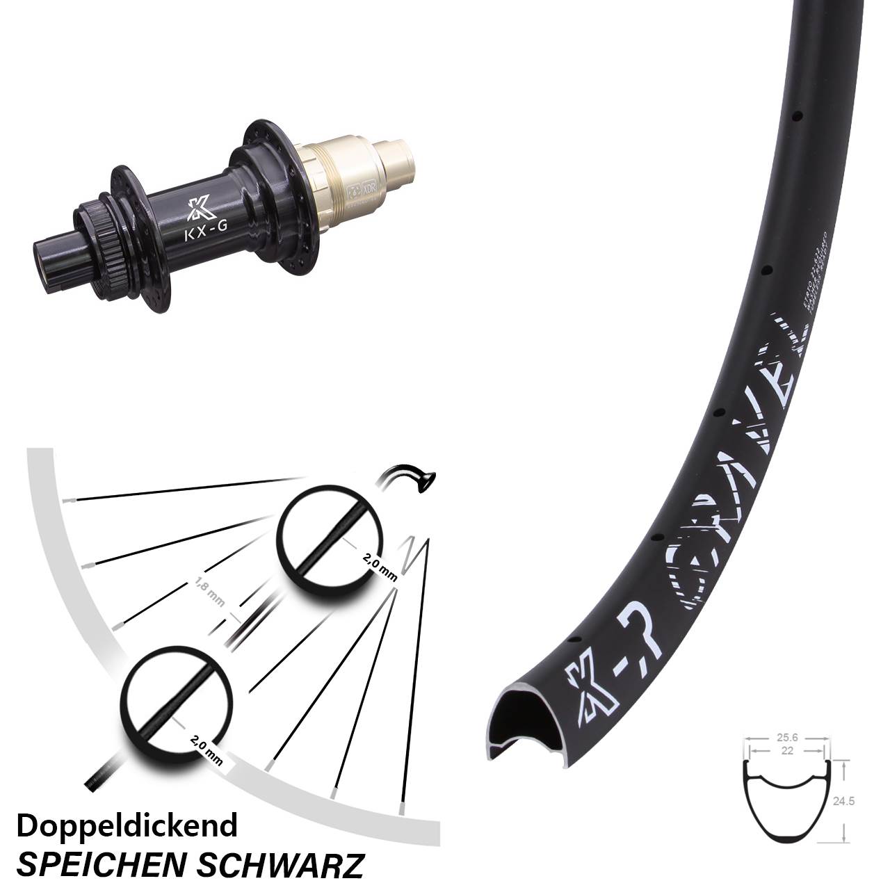 Technische Daten Hinterrad KX-R Gravel schwarz mit Nabe KX-G schwarz