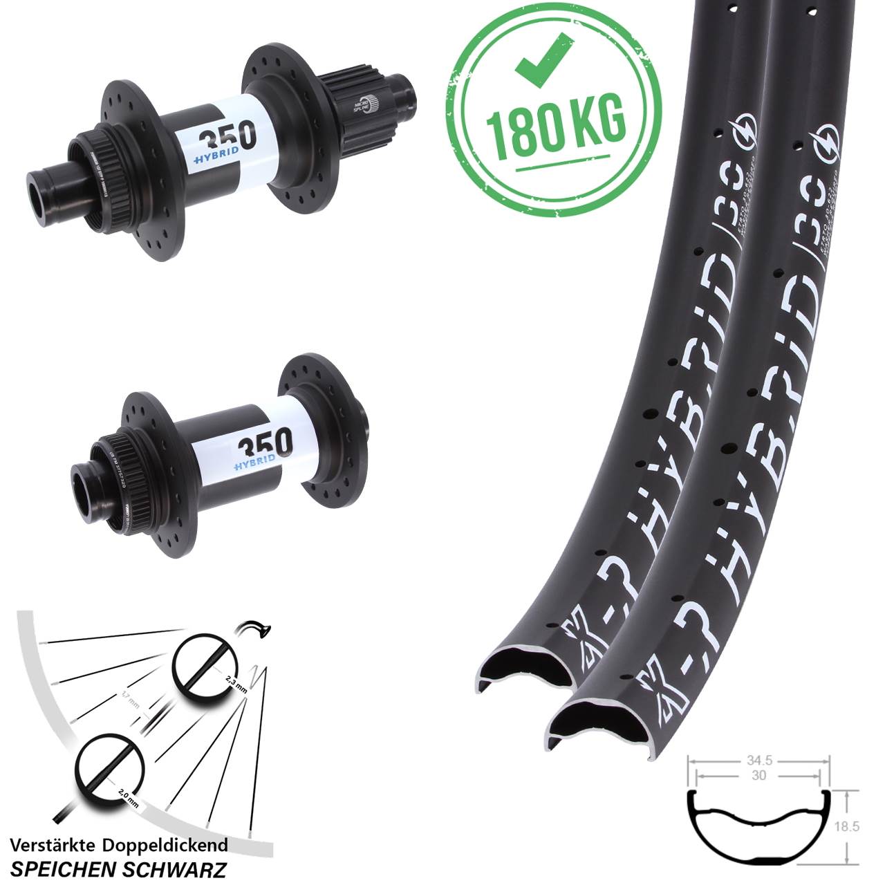 - zulässiges Systemgewicht: 180 kg mit Messingnippeln (120 kg mit Alunippeln) - extra stabiles Laufrad