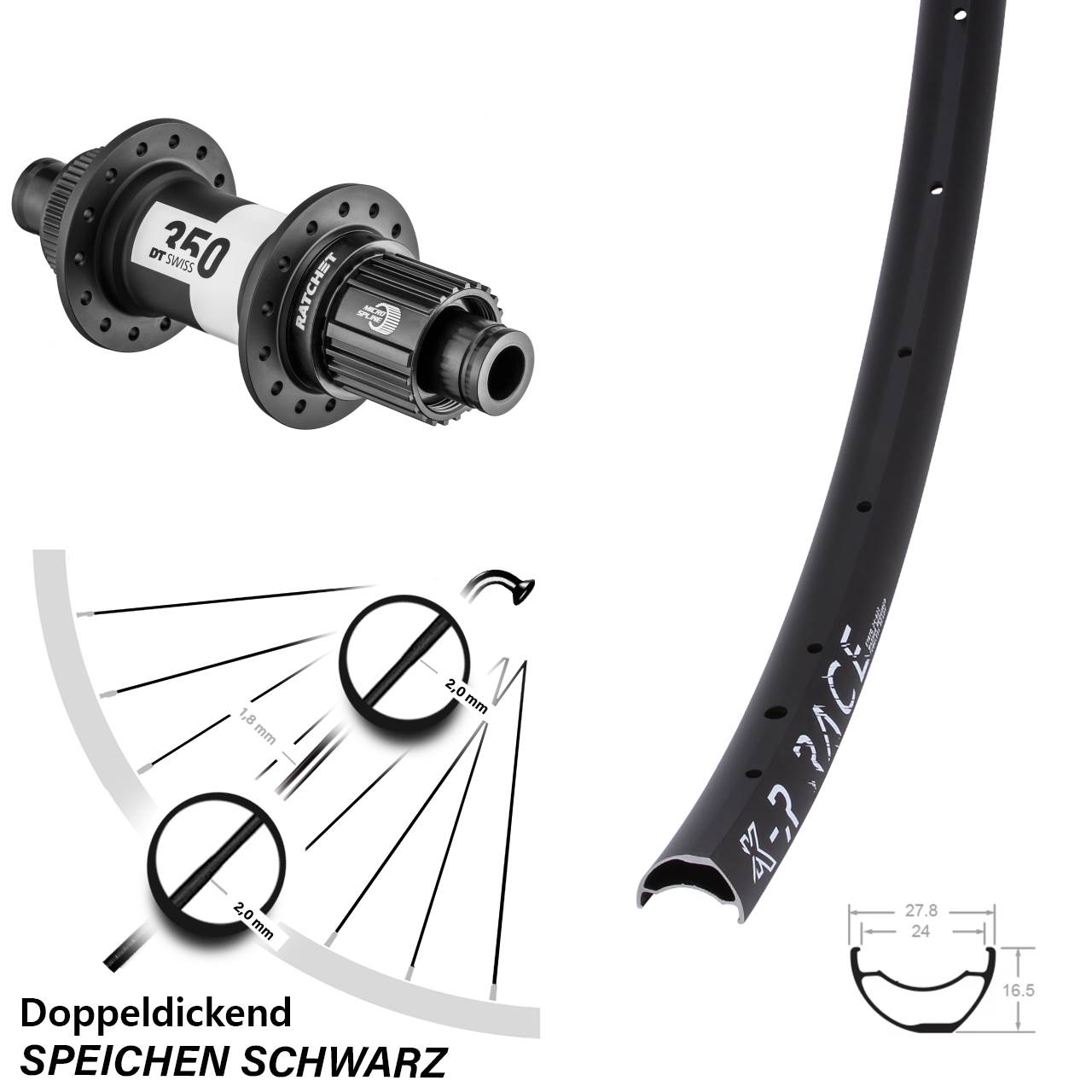 Technische Daten Hinterrad KX-R Race schwarz mit Nabe DT Swiss 350 Ratchet 36 schwarz