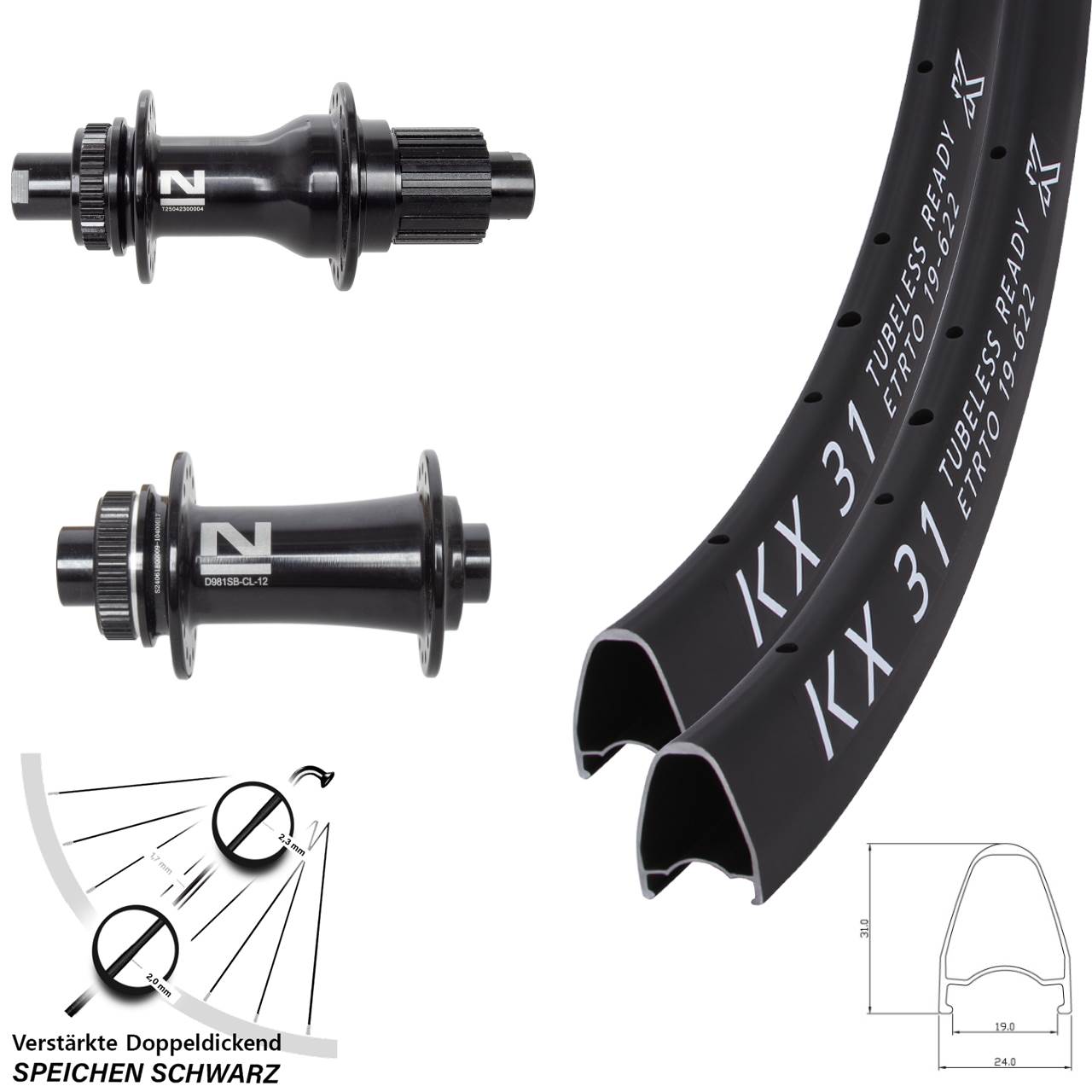 - Speichenstärke: 2,3-1,7-2,0 mm Edelstahl