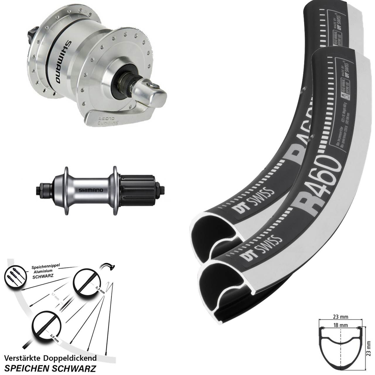 Laufradsatz 28 Zoll DT Swiss R460 Shimano DH3N72 FH-RS400 8-11 fach HG für Schnellspanner mit verstärkten Doppeldickendspeichen
