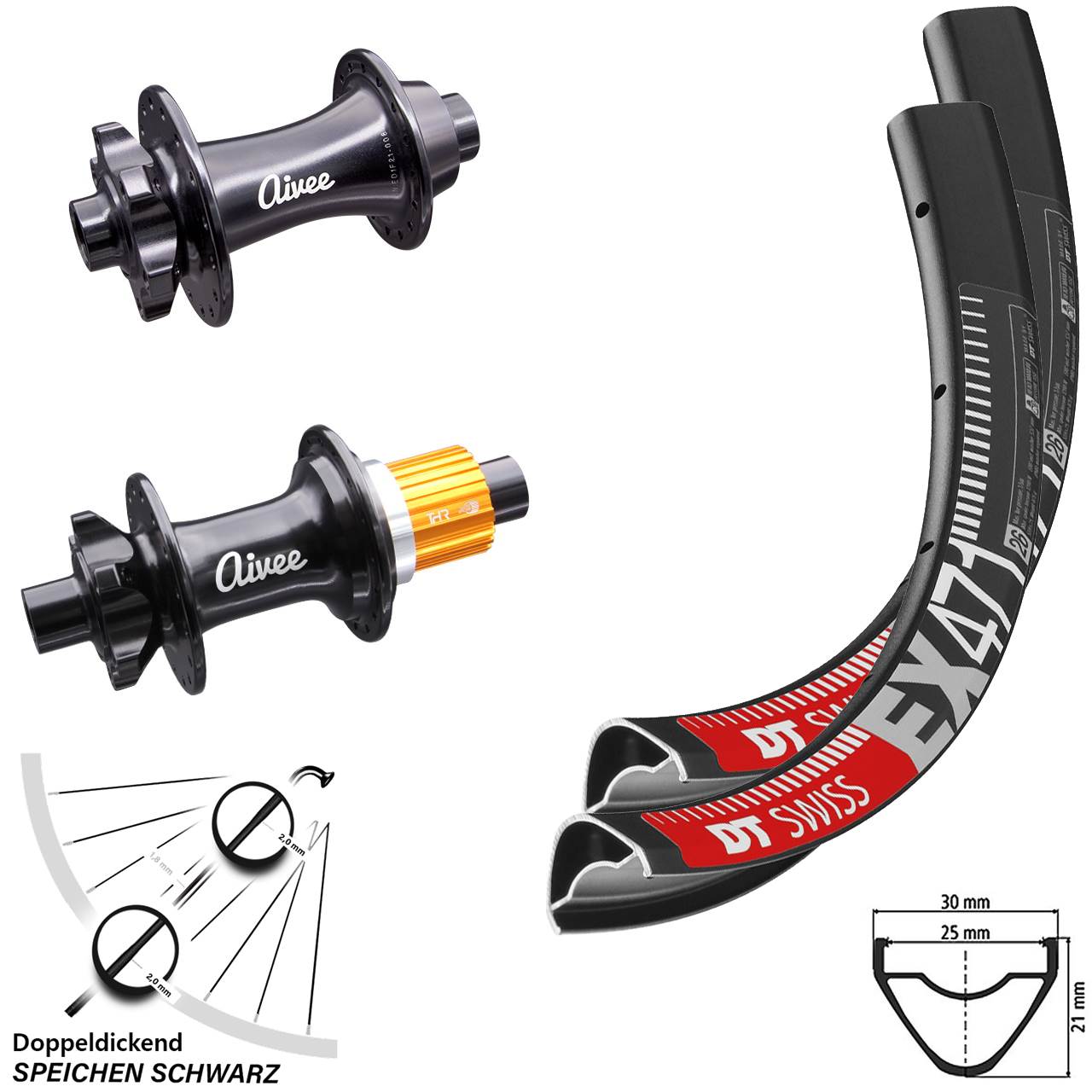 Laufradsatz 29 Zoll DT Swiss EX 471 Nabe Aivee Classic Boost Shimano Micro Spline mit Doppeldickendspeichen
