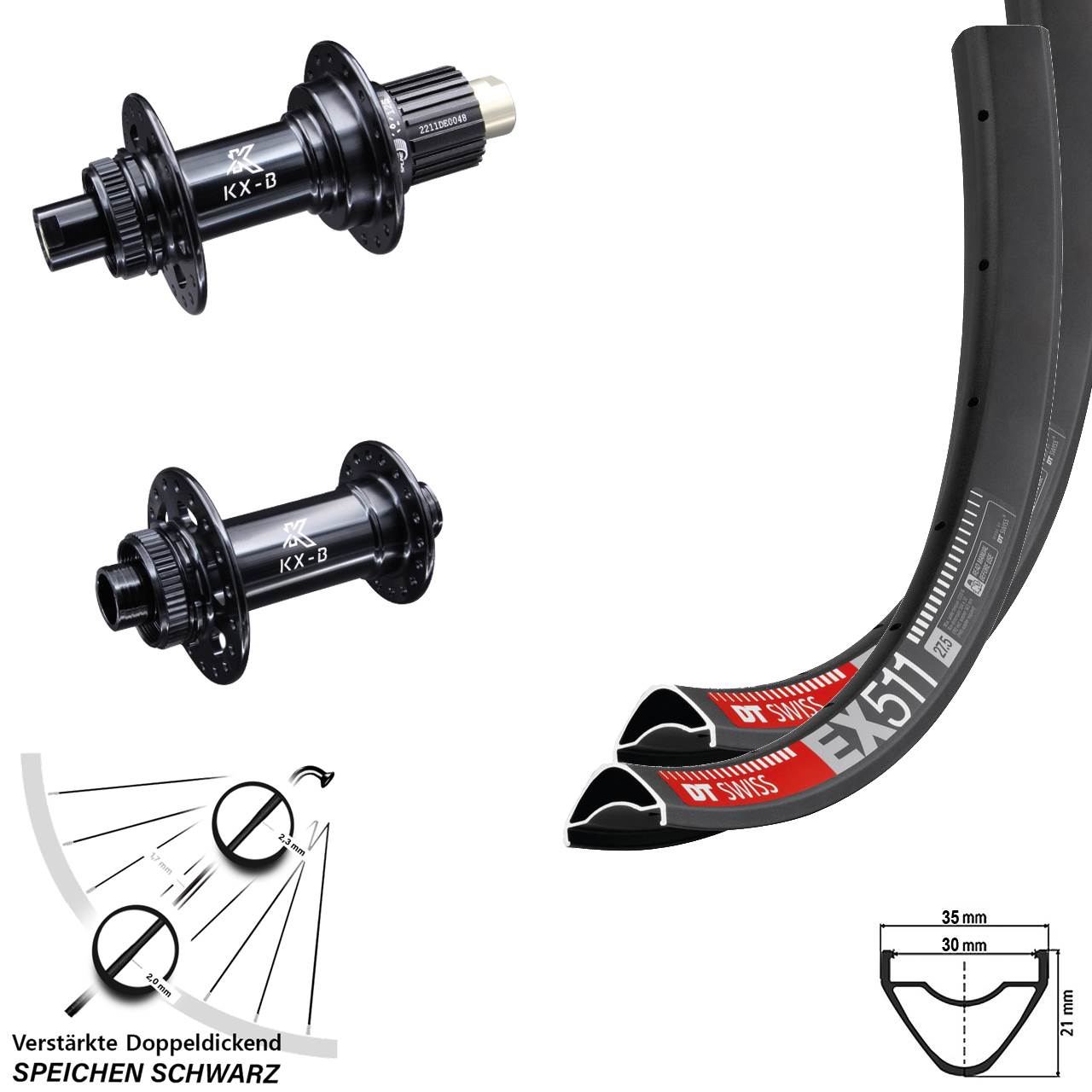 - Modell Vorderradnabe / Hinterradnabe: KX-B schwarz