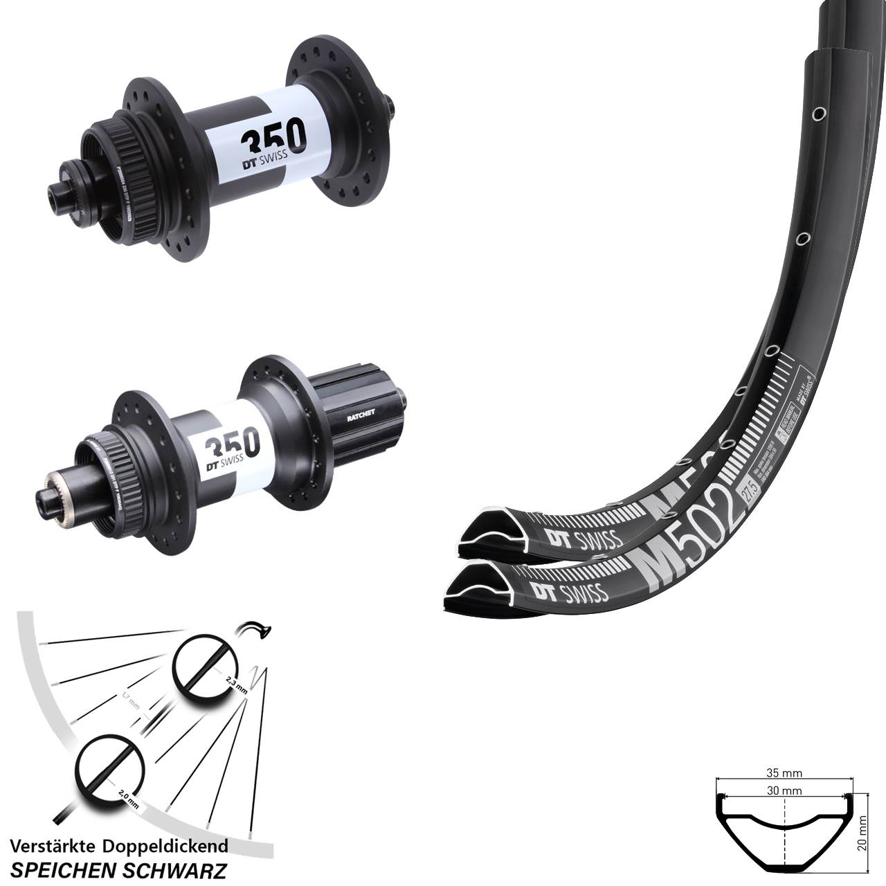 Technische Daten Laufradsatz 29 Zoll DT Swiss M502-350 Ratchet 36 8-11 fach HG QR