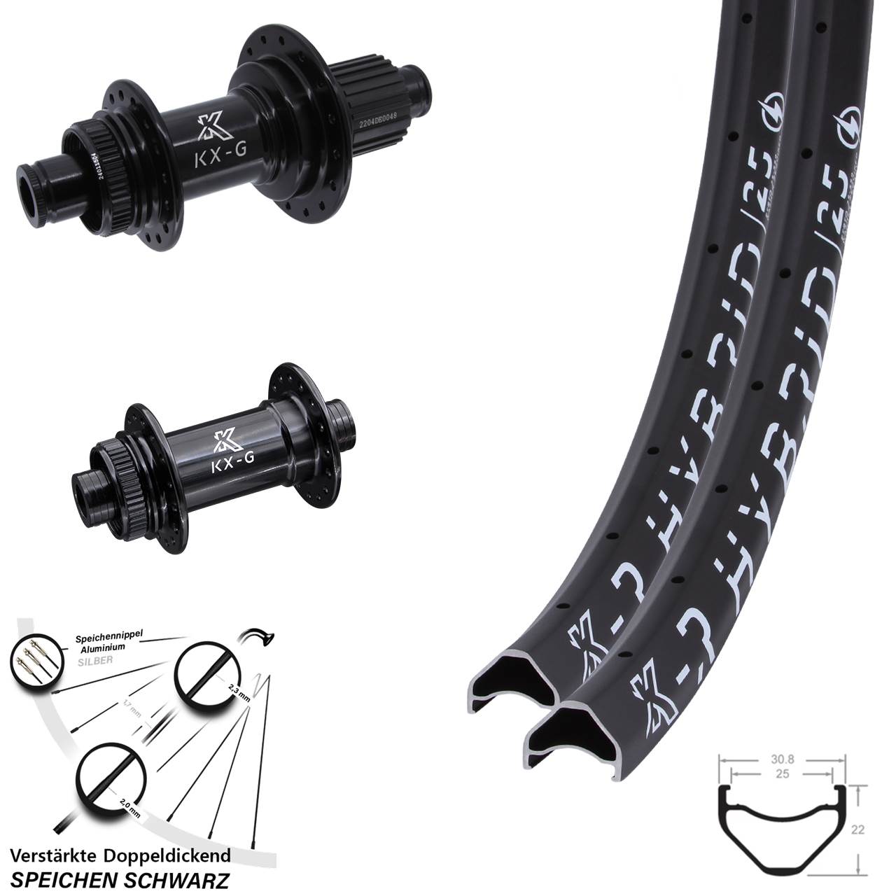 - Modell Vorderradnabe / Hinterradnabe: KX-G Road KX-GS Stahlachse Stahl-Freilauf schwarz