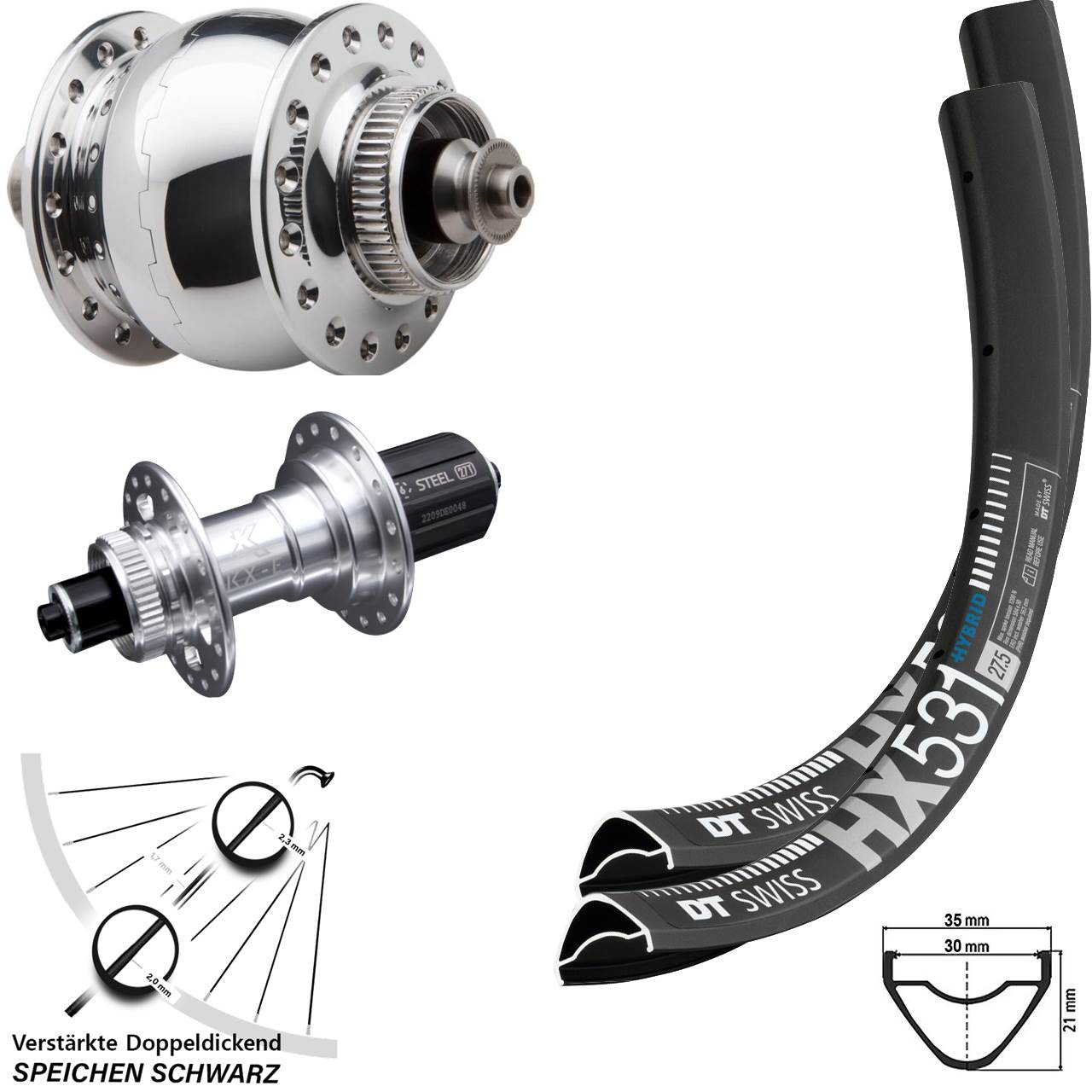 - 1 Disc Laufrad mit Nabendynamo QR 29 Zoll DT Swiss HX 531 SON 28 poliert (Auswahl zwischen Alunippel rot, Alunippel schwarz, Alunippel silbern, Messingnippel schwarz, Messingnippel silbern)
